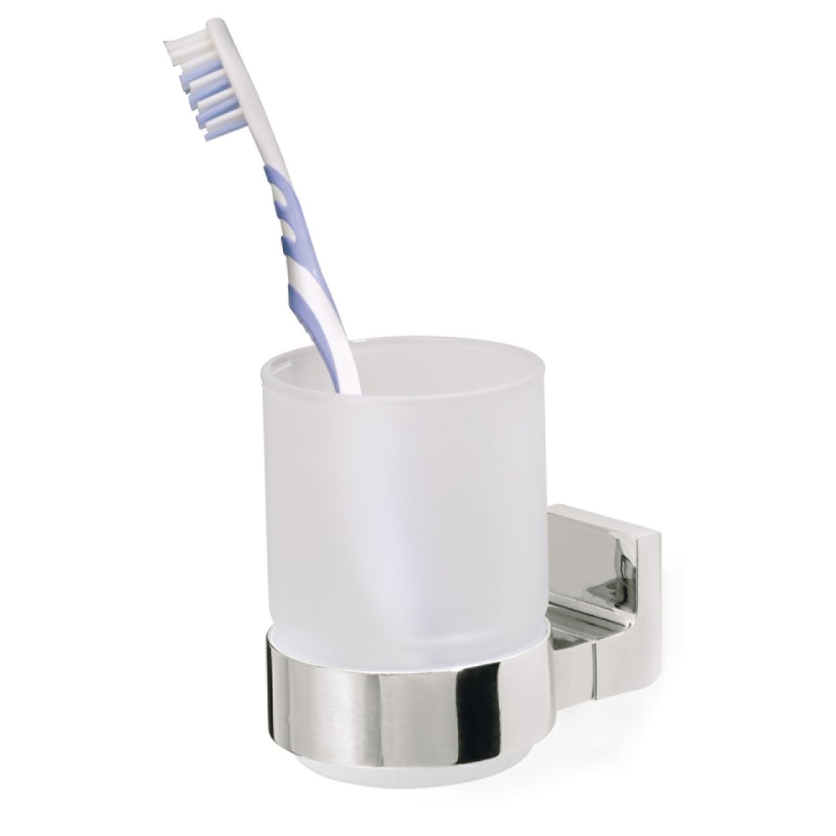 Елегантна поставка за четки за зъби от серия Ontario изработена от висококачествени материали, подходящи за употреба във влажна среда в комбинация със стъклена чаша, която може да се сваля за оптимална хигиена в банята.