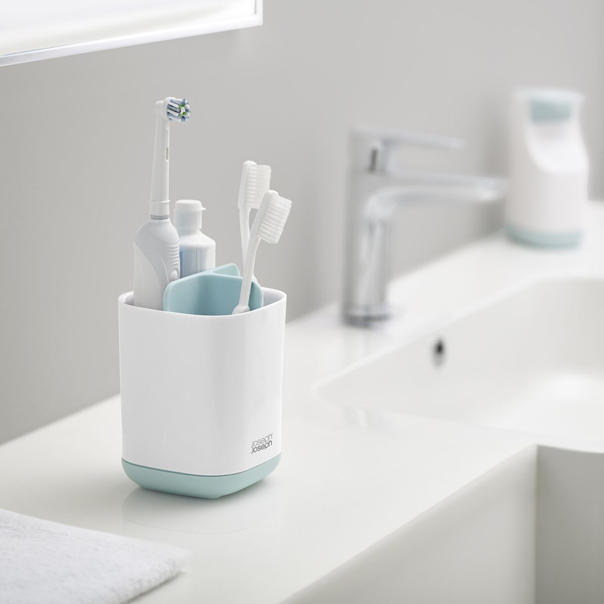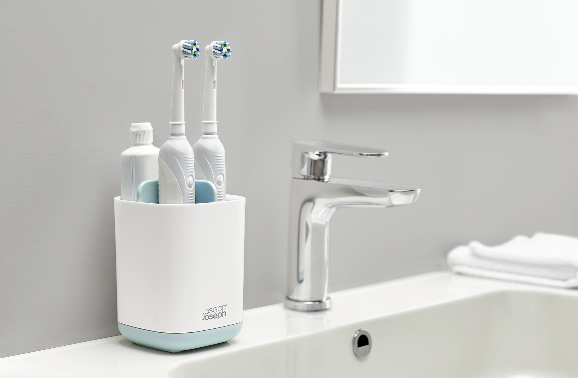 Тази умна поставка за четка за зъби на английската компания Joseph Joseph се разглобява за лесно почистване и разполага с вентилационен отвор за бързо изсъхване, което означава, че е по-хигиенично. Освен това има и неплъзгаща се основа.
