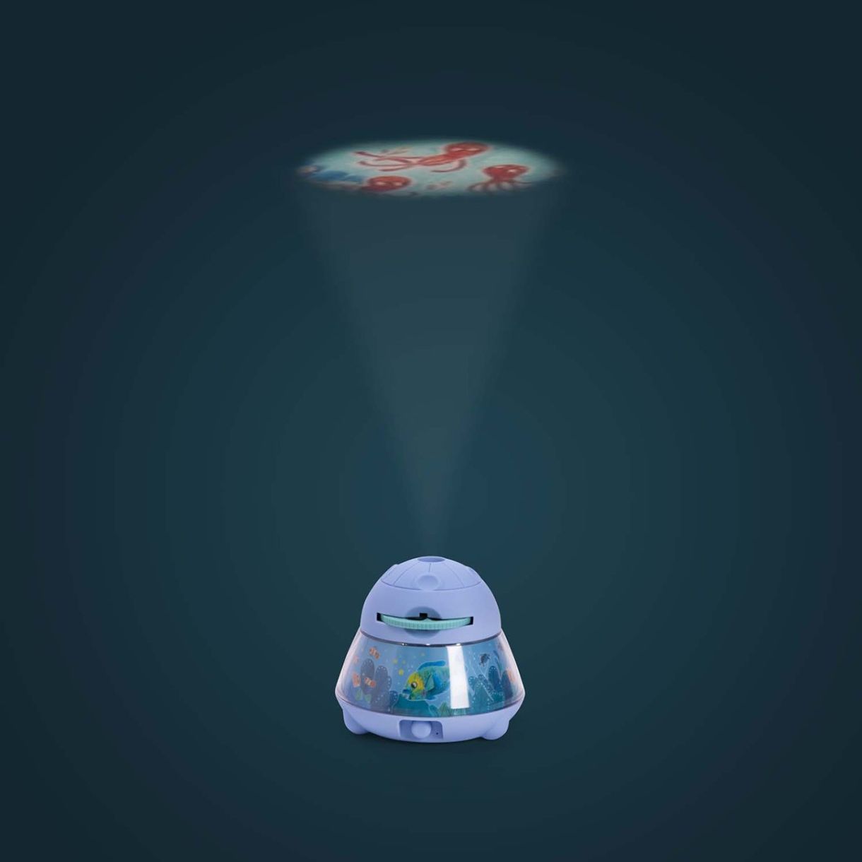 Проектор, който изобразчва 24 илюстрирани изображения от колекцията „Приключенията на Поли“ за откриване на морските животни. Вградената нощна лампа осветява красив пейзаж и се изключва автоматично след 15 минути. Съдържа 3 диска, всеки с по 8 слайда.