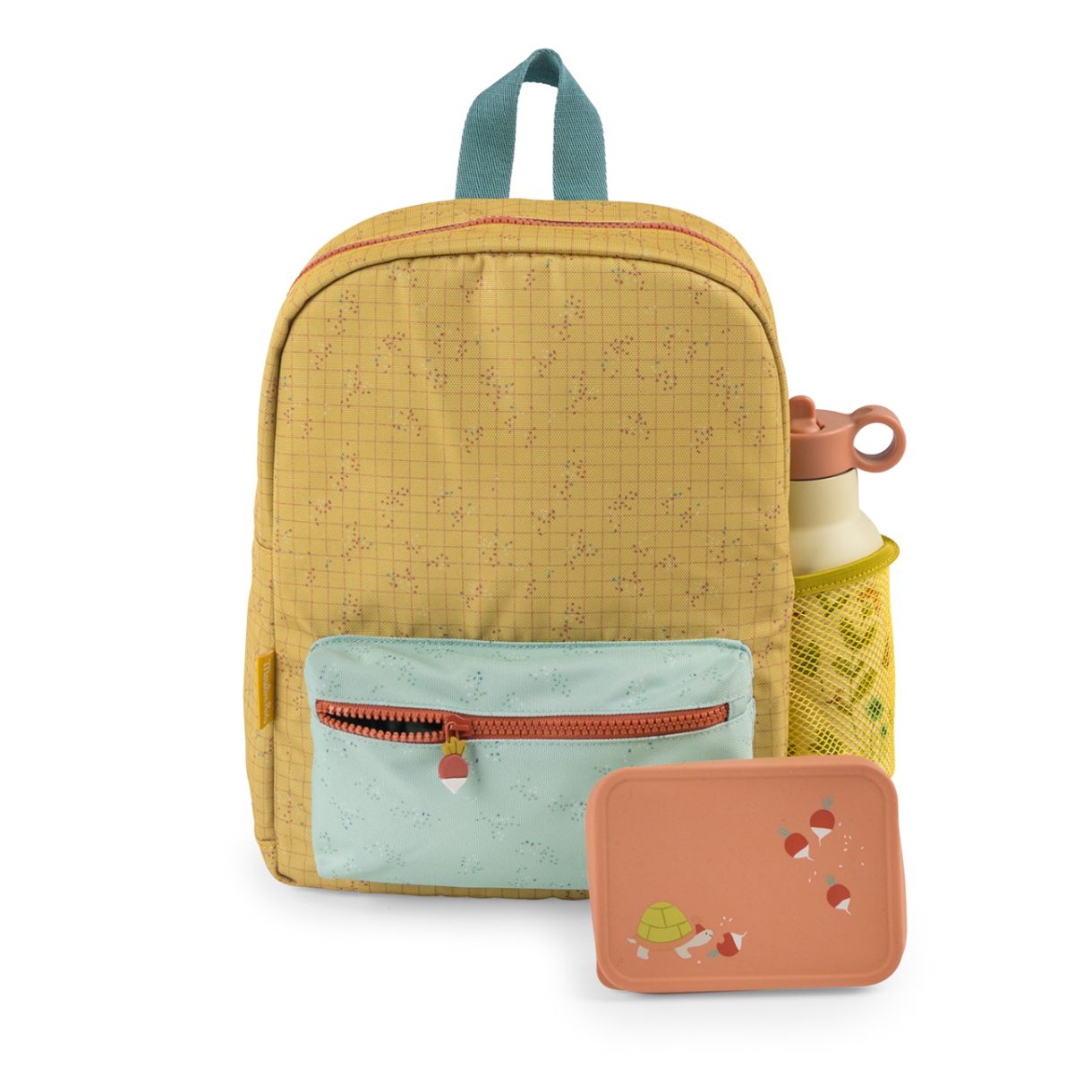 Идеалният раница за училище за деца от 3-годишна възраст. В нея може да се сложи безпроблемно формат А4, малки съкровища в предния джоб или дори бутилка за вода отстрани. Изработена от рециклиран полиестер, тя придружава децата в ежедневието им.