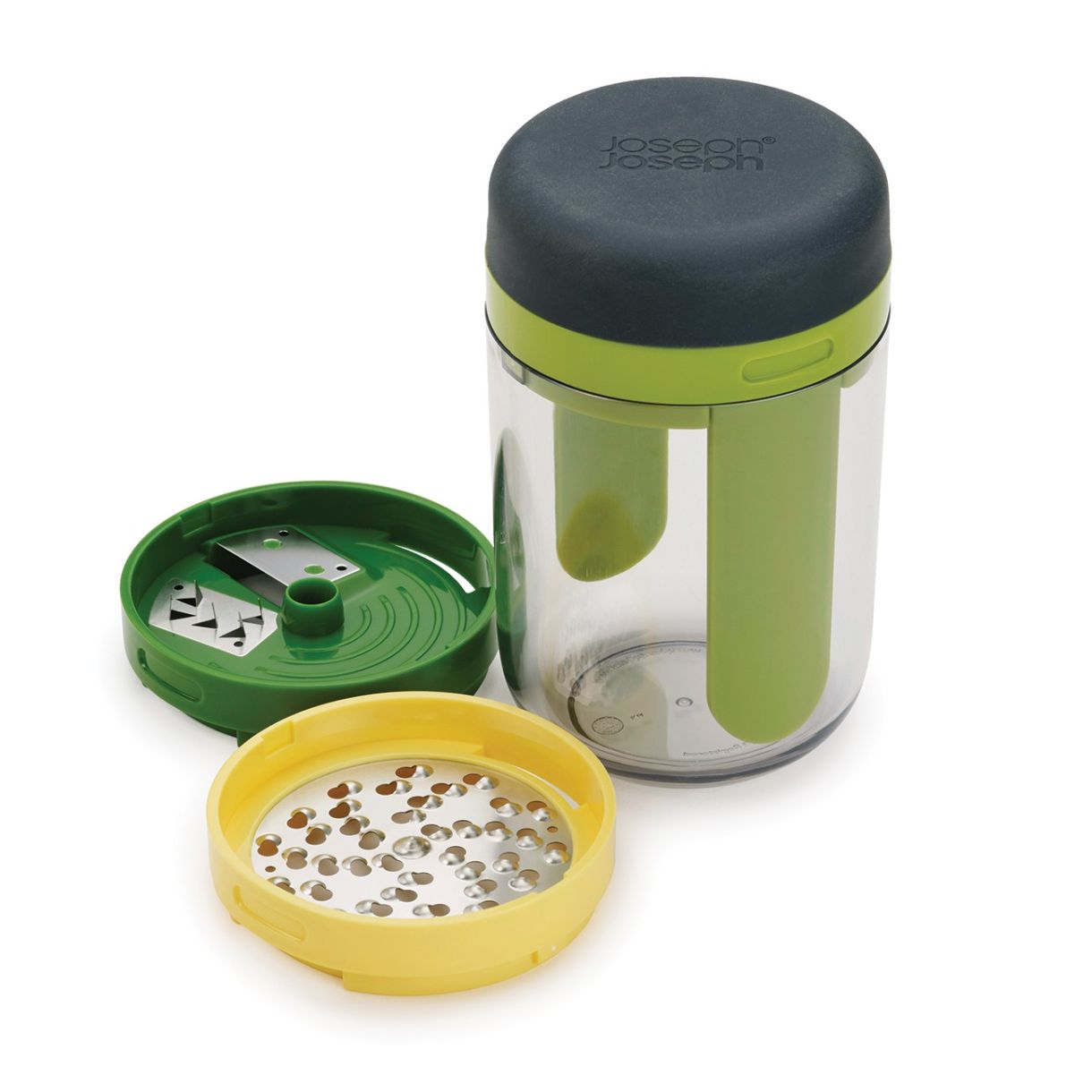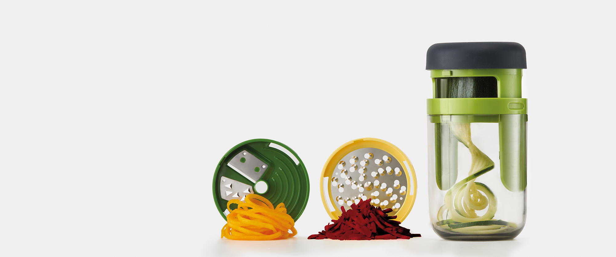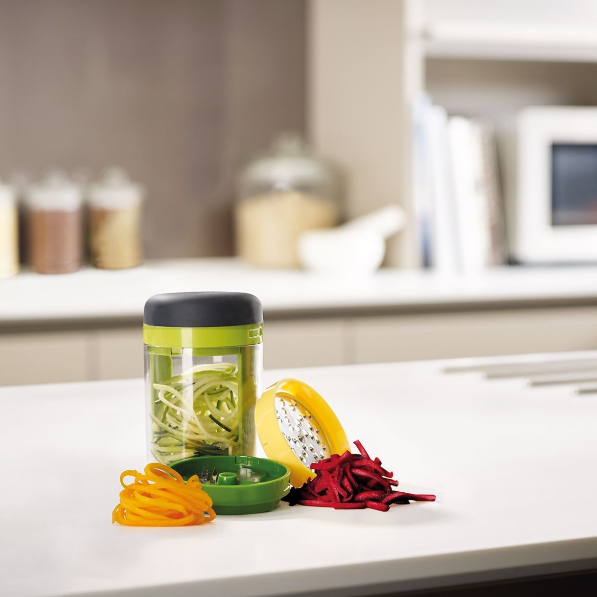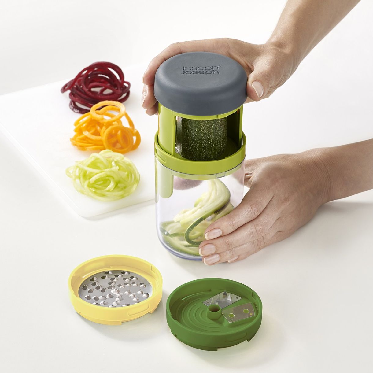Дизайнът на този спирализатор свежда бъркотията до минимум, събирайки храната, докато я режете, и прави спирализирането на цял набор от зеленчуци супер спретнато и лесно.