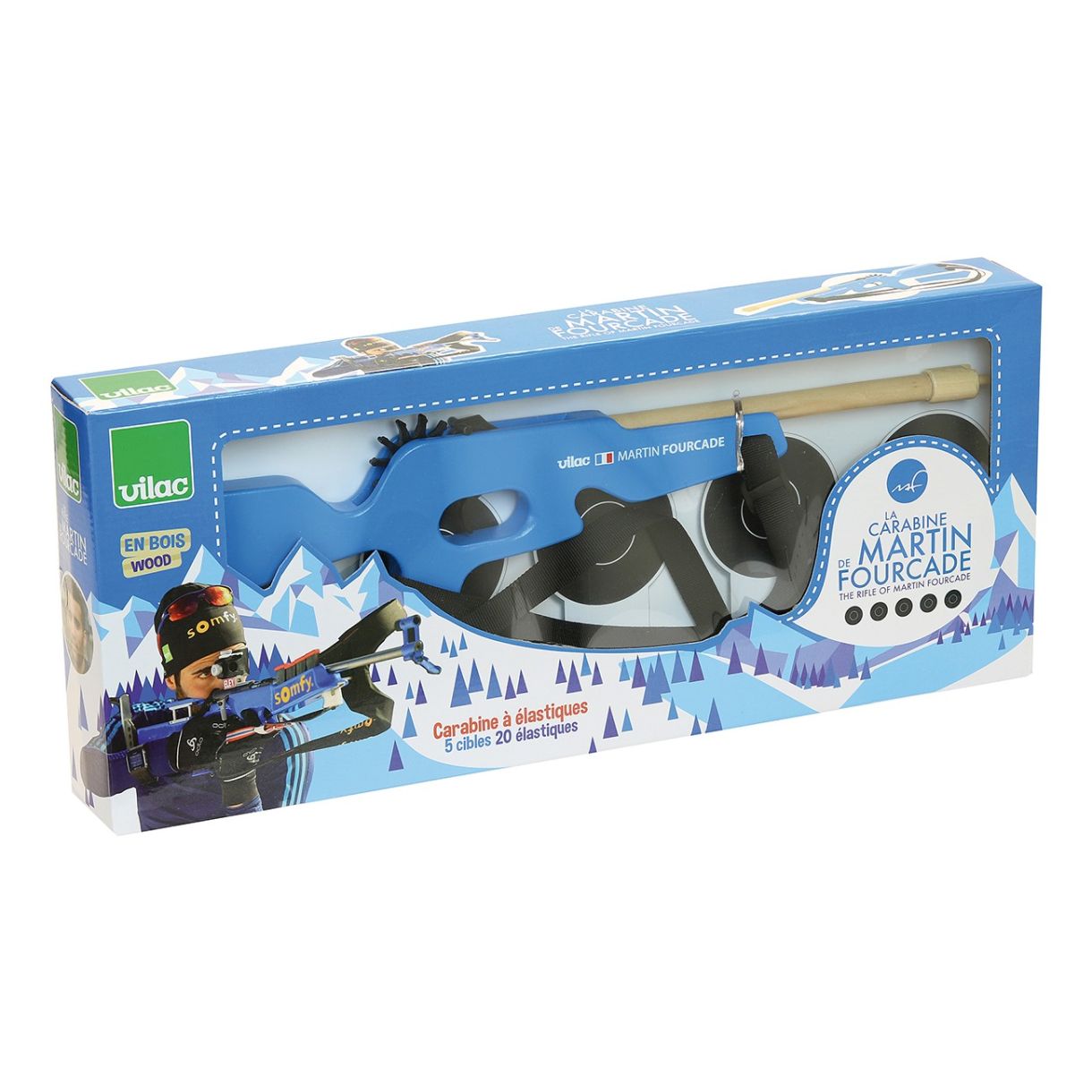 Биатлон, който ще следва стъпките на  прекрасения многократен олимпийски и световен шампион Мартен Фуркад. Съдържа декорирана дървена пушка, мишени, обяснителна книжка и 20 гумени ленти. Пушката е с дължина 50 см.