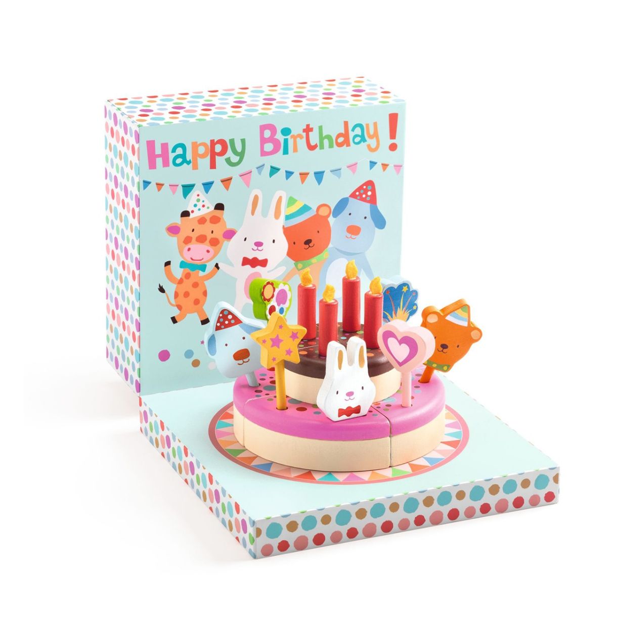 Честит рожден ден! Вкусна торта, която да украсите и споделите на рождения си ден. Вътре в тази прекрасна дървена кутия ще намерите 8 аксесоара и 4 свещи за украса на тази цветна торта. След като тортата е готова, ще изглежда страхотно! Сега просто духнете свещите и се сгушете с приятелите си.