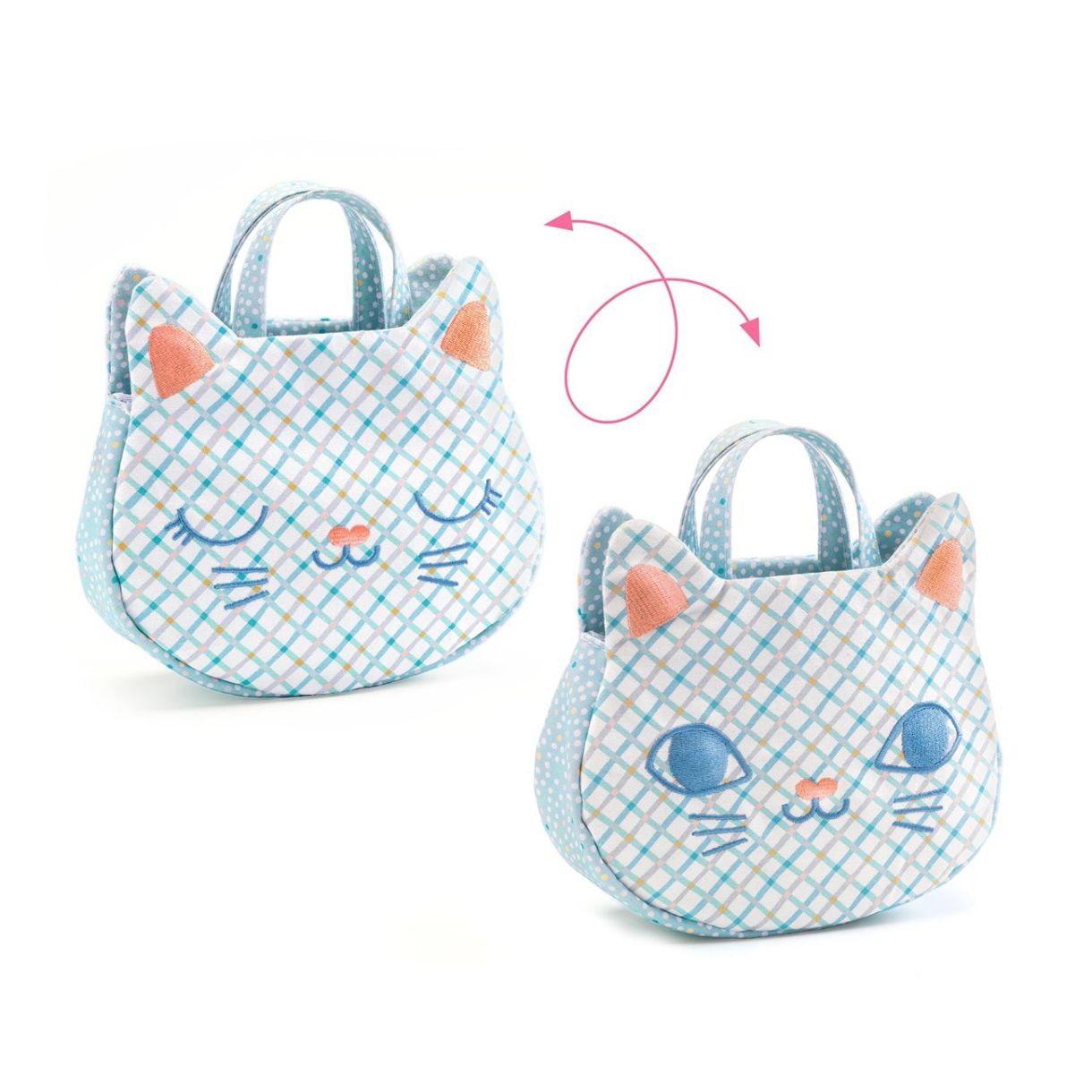 - Лицето на котката е бродирано от двете страни на чантата: 1 страна будна и 1 страна спяща.