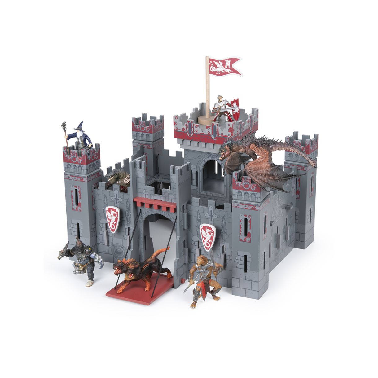 Този детайлно изработен замък осигурява перфектната сцена за вашите фигурки на рицар, дракон и легендарни същества. Със своите извисяващи се кули, здрави стени и скулптурни детайли, той перфектно улавя духа на средновековни приказки и фентъзи легенди.