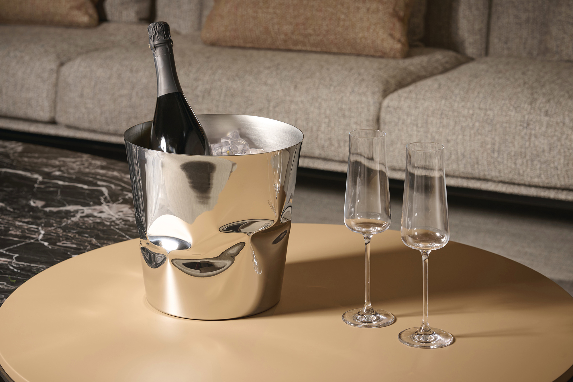 С проекта си „Compressioni“, Paolo Ulian е замислил нов начин за оформяне на метал. Метод, който разкрива необикновена експресивност. Контейнерите първо се изработват на струг, след което се компресират, за да се получи крайната форма. Гънките, създадени на предметите, са почти магически подредени в геометрични шарки – квадрати, петоъгълници, шестоъгълници и осмоъгълници – придавайки очарователна закономерност на уникалните различия на елементите.