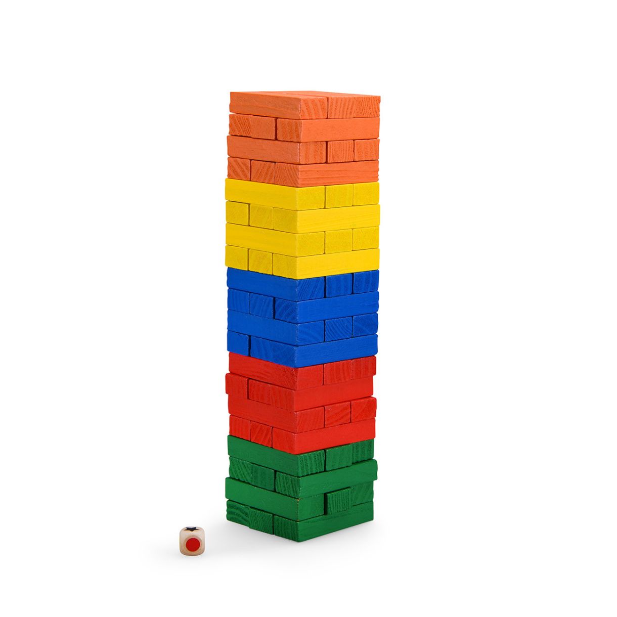 Цветната дървена дженга на Moulin Roty е забавление за цялото семейство. Целта на играта е да предпазите кулата от падане.Играта се състои от 60 дървени блокчета в четири различни цвята. Изградете кула от дървените блокове. Хвърлете зара, зарът определя кой цвят трябва да вземете от кулата. Вземете куба от кулата с една ръка и го поставете отгоре, без кулата да се срути.