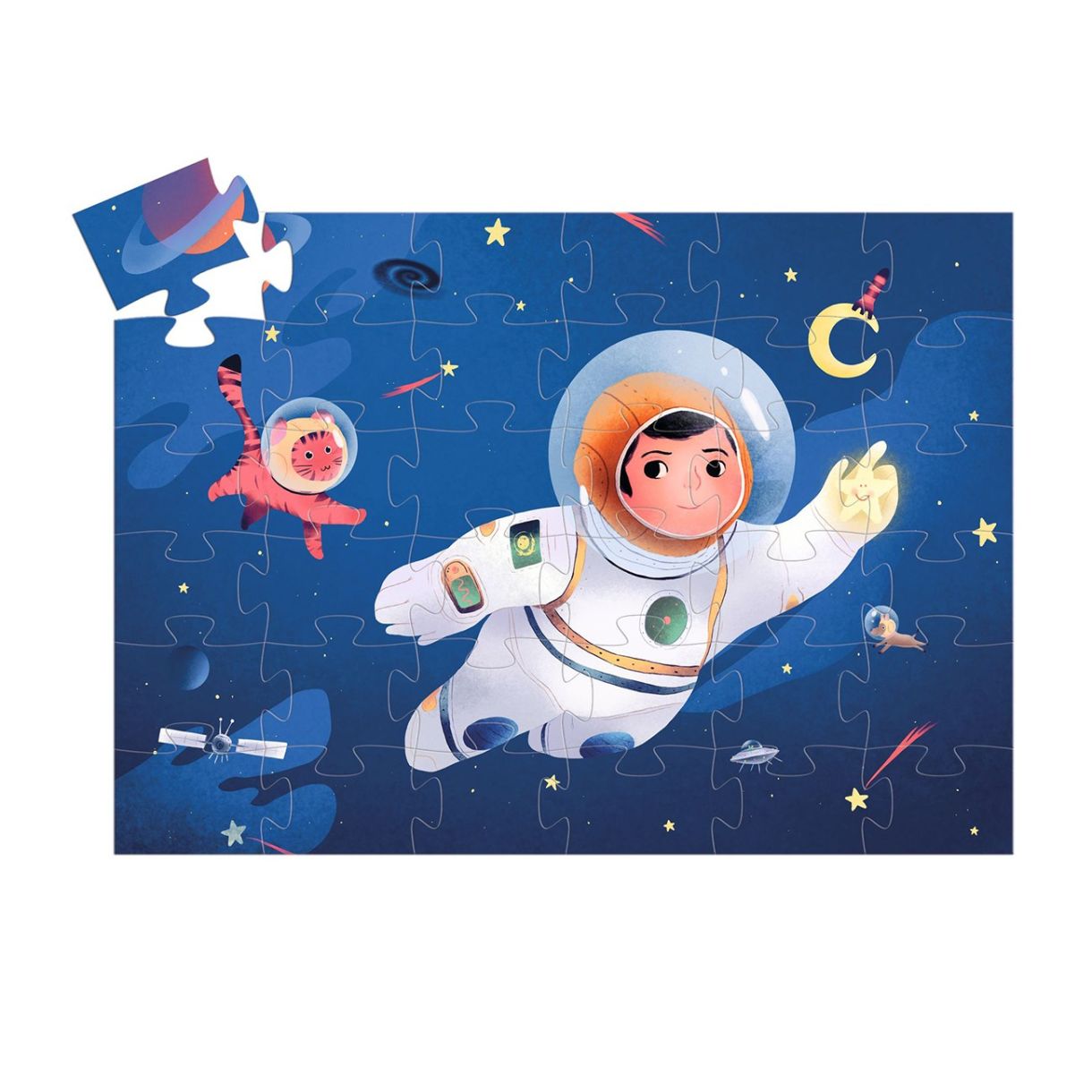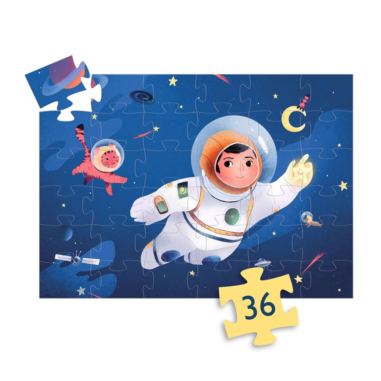 Космическото пътуване вече не е само мечта! Превъзходен пъзел от 36 части в стилна кутия с форма на луна.