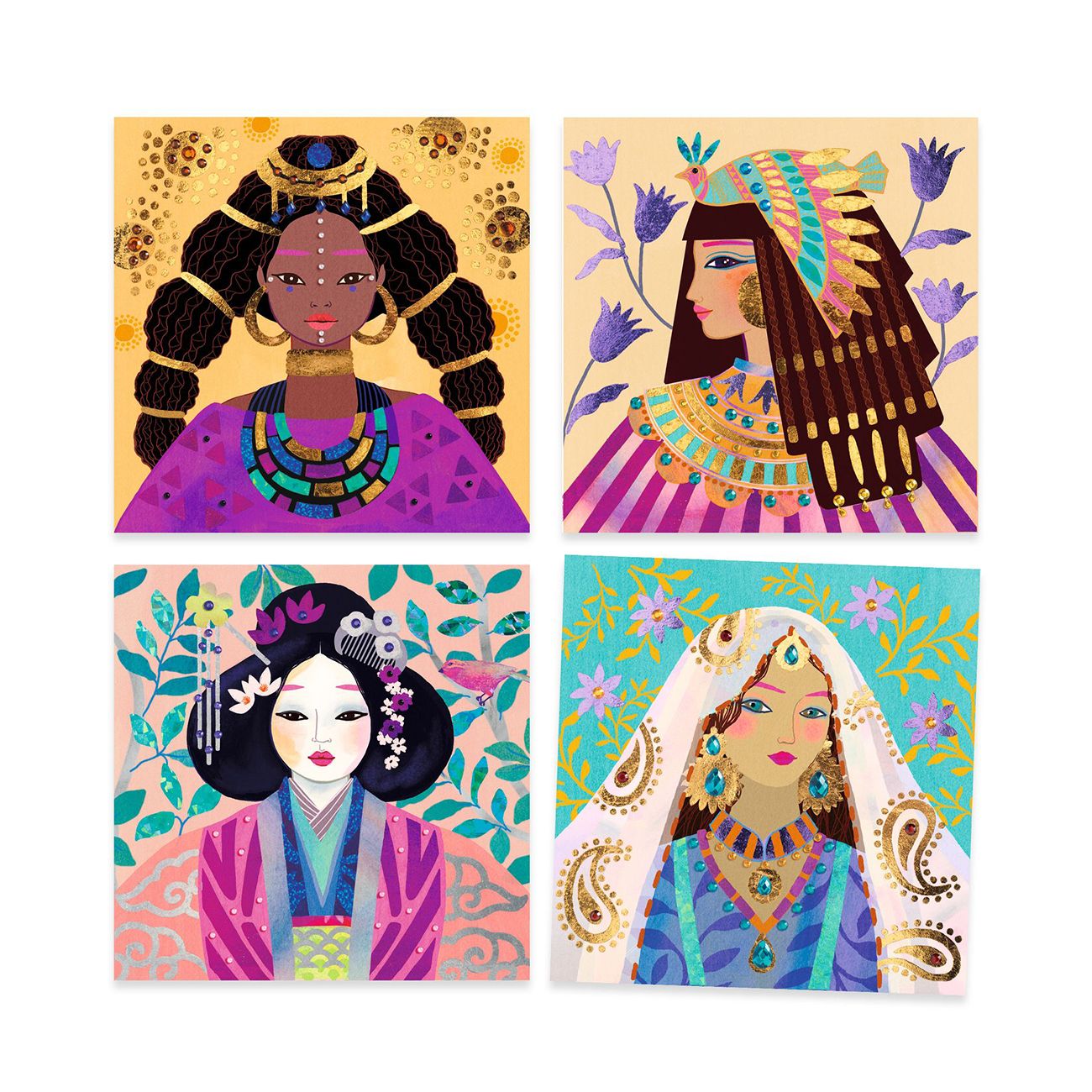 - 4 предварително залепени илюстровани картини (20 x 20 см)