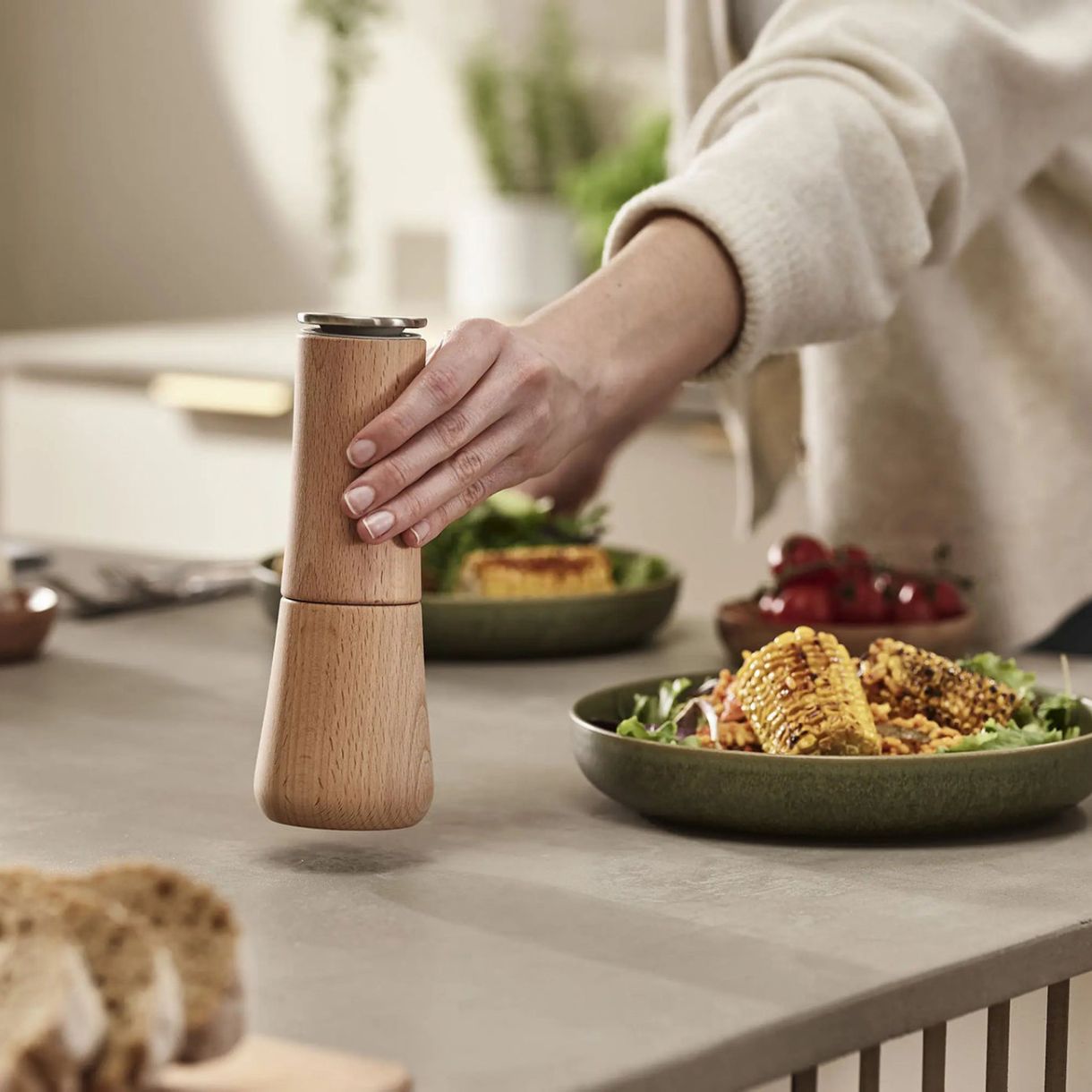 Ако предпочитате да подправяте ястия, без да пилеете солта, Milltop™ е за вас. За разлика от конвенционалните мелници, на тази керамичния механизъм е в горната част, за да гарантира, че излишната смляна маса пада обратно в мелничката след употреба. Изработена от естествена букова дървесина и лесна за използване и пълнене. Тази мелничка за сол е основен актив за всяка маса за хранене.