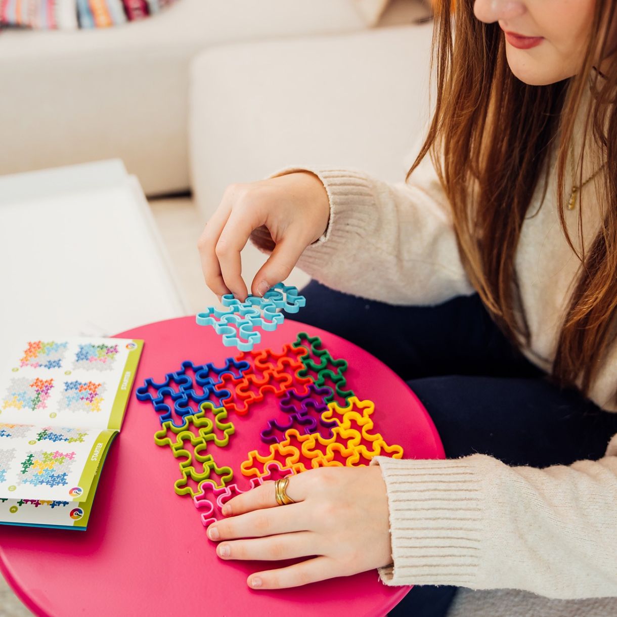 IQ игра, която наистина може да ви накара да се замислите! Изберете предизвикателство и съставете квадрат 6 × 6, като използвате 9-те цветни парчета пъзел и подсказките в задачата. Тази IQ игра за деца и възрастни предлага свеж обрат на класическите пъзели и включва 120 предизвикателства – от лесно до експертно, в характерния стил на Smart Games.