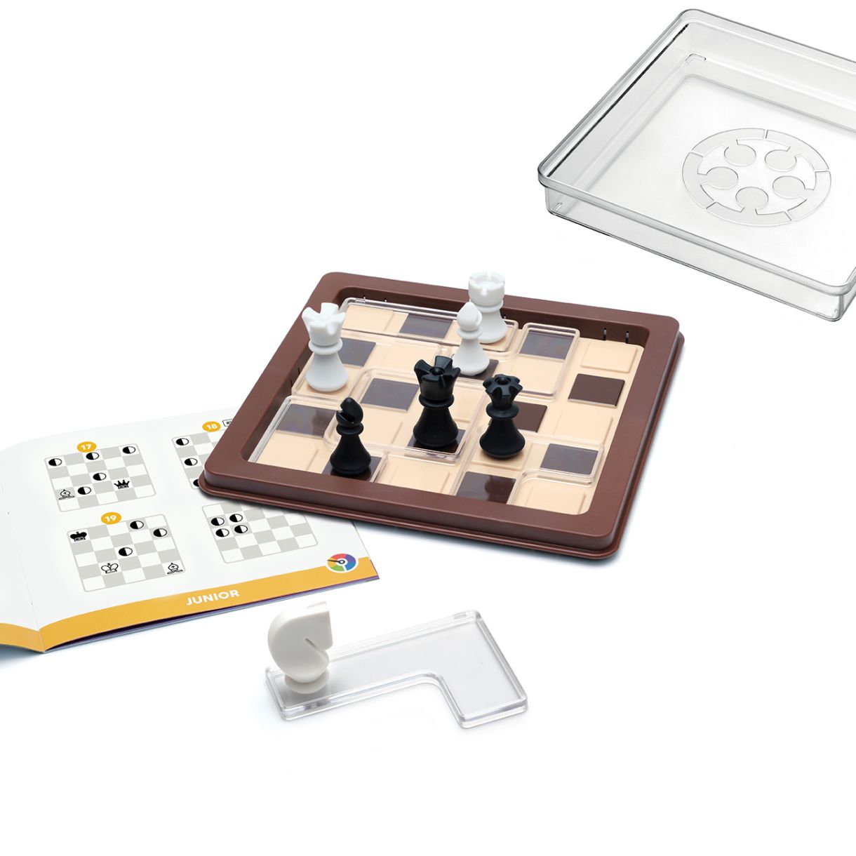 Балансирайте стратегия и спокойствие в играта Шах и Мир, логическият пъзел, където шахът среща душевния мир! Подредете 7 парчета от пъзела, всяко от които носи шахматна фигура, така че черното и бялото никога да не се сблъскват и да не могат да се атакуват. Но внимавайте: моделите на атака на цар, кон, топ, офицер и дама са безмилостни. Един грешен ход и балансът се разпада! Логическа шахматна игра с предизвикателства от лесни до експертни ще тества вашата логика, планиране и пространствена проницателност.