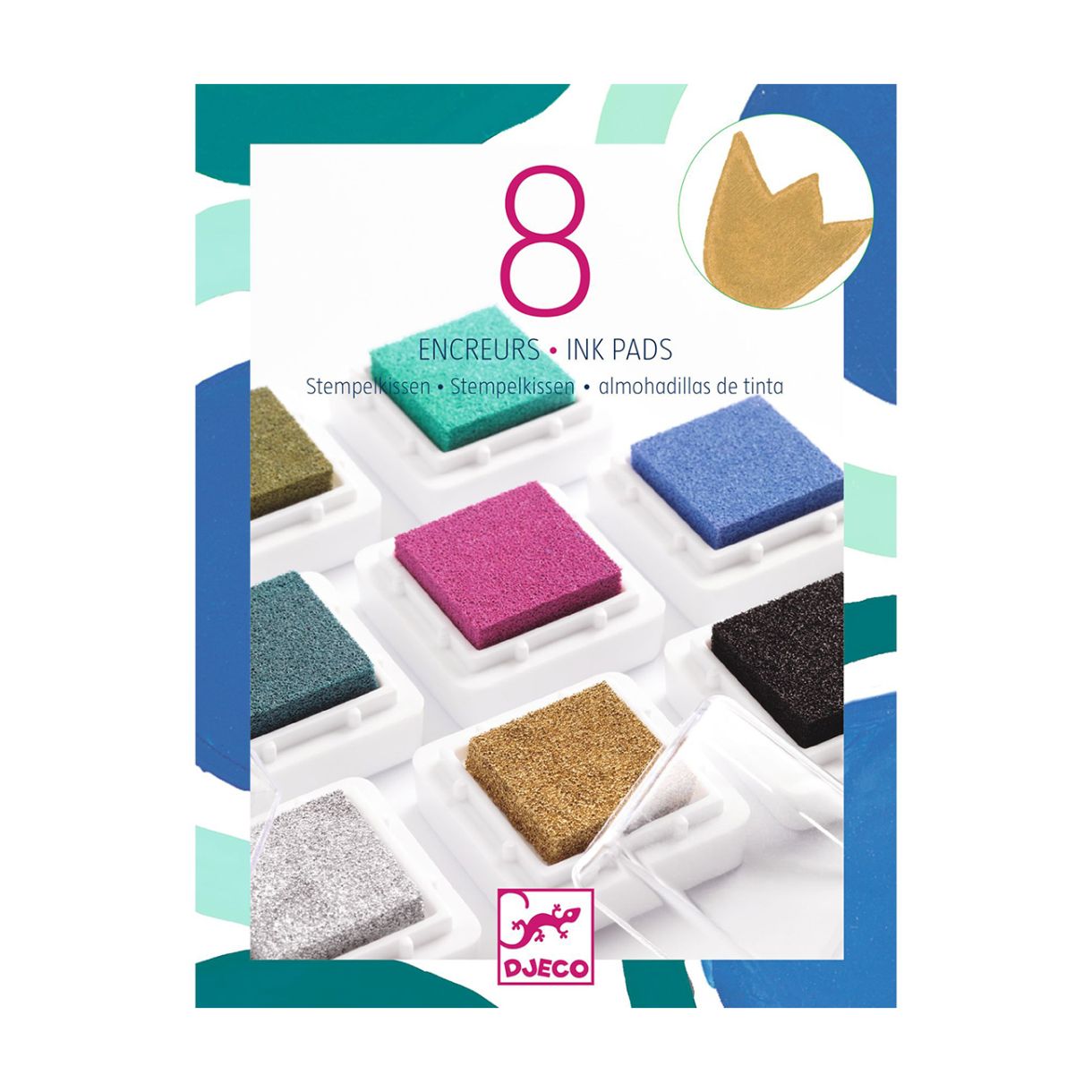8 тампона с мастило в шик цветове, които да използвате с вашите печати за искрящи, блестящи творения! Използвайте предоставената четка, за да почиствате основата на вашите печати всеки път, когато сменяте цветовете.