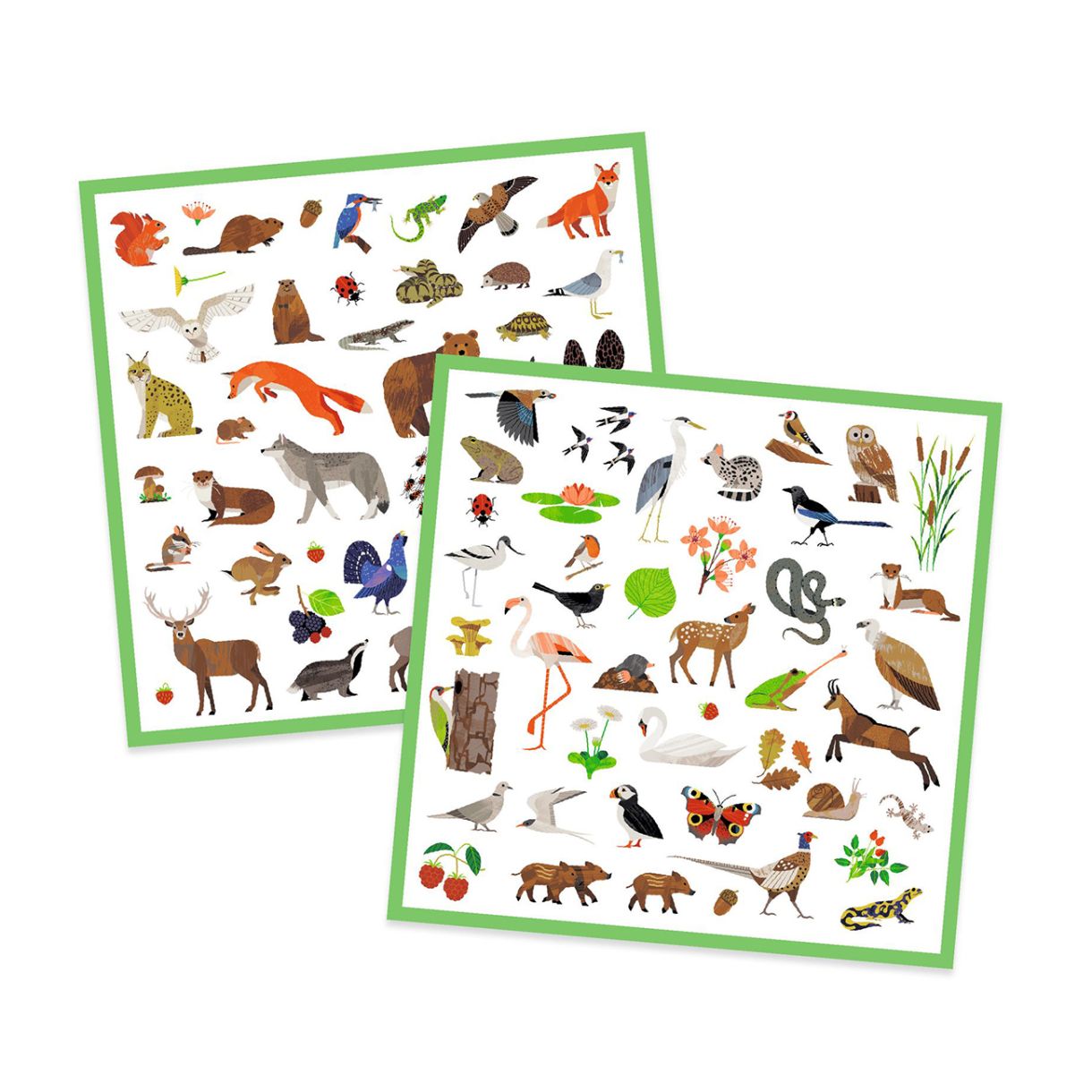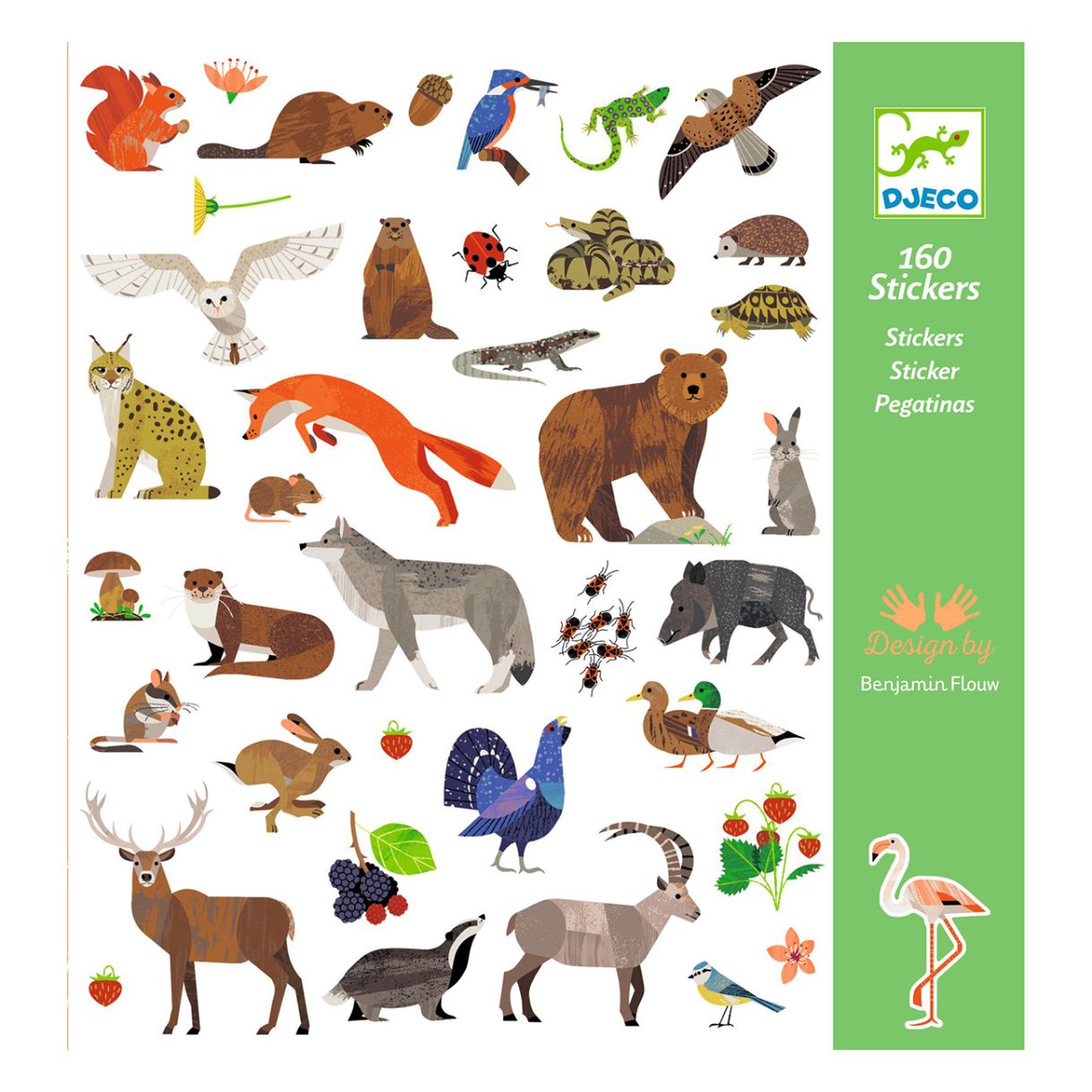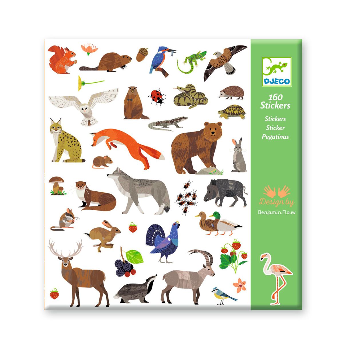 160 стикера на тема животни в Европа. От добре познати животни като елени, лисици и диви свине до по-малко известни глухар, язовец и златка, децата ще открият богатото разнообразие на европейската флора и фауна. Залепете стикерите както искате, за да създадете свои собствени красиви сцени или украсете каквото искате!