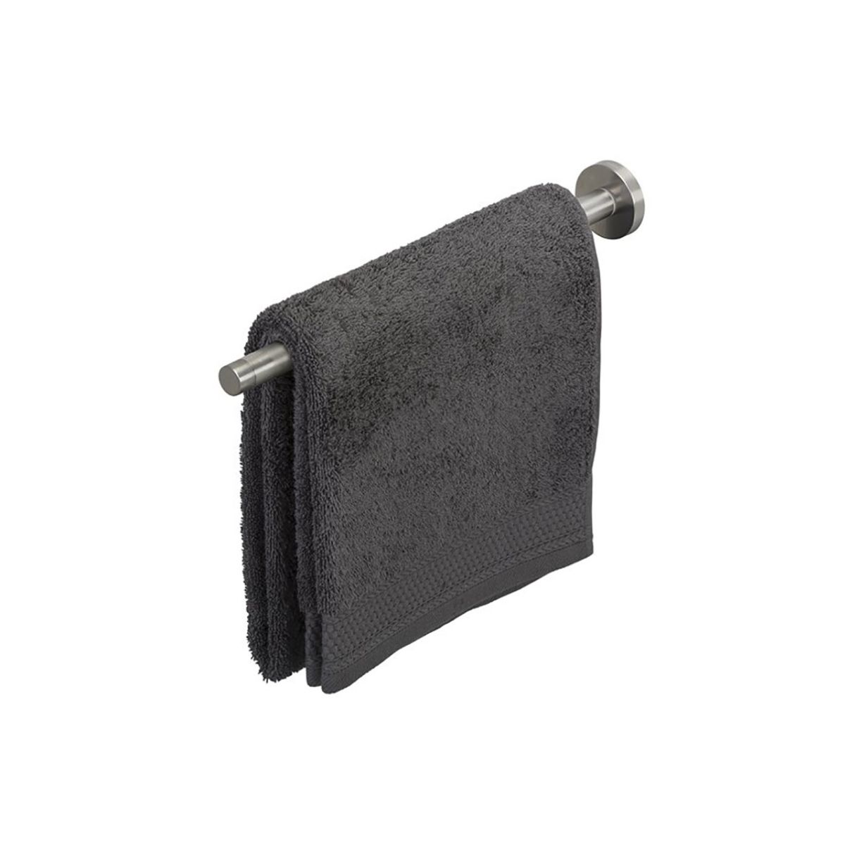 Елегантна телескопична релса за хавлия, изработена от стомана. Цвят матирана стомана. Подходяща за употреба във влажна среда. Изчистен дизайн и функционалост.