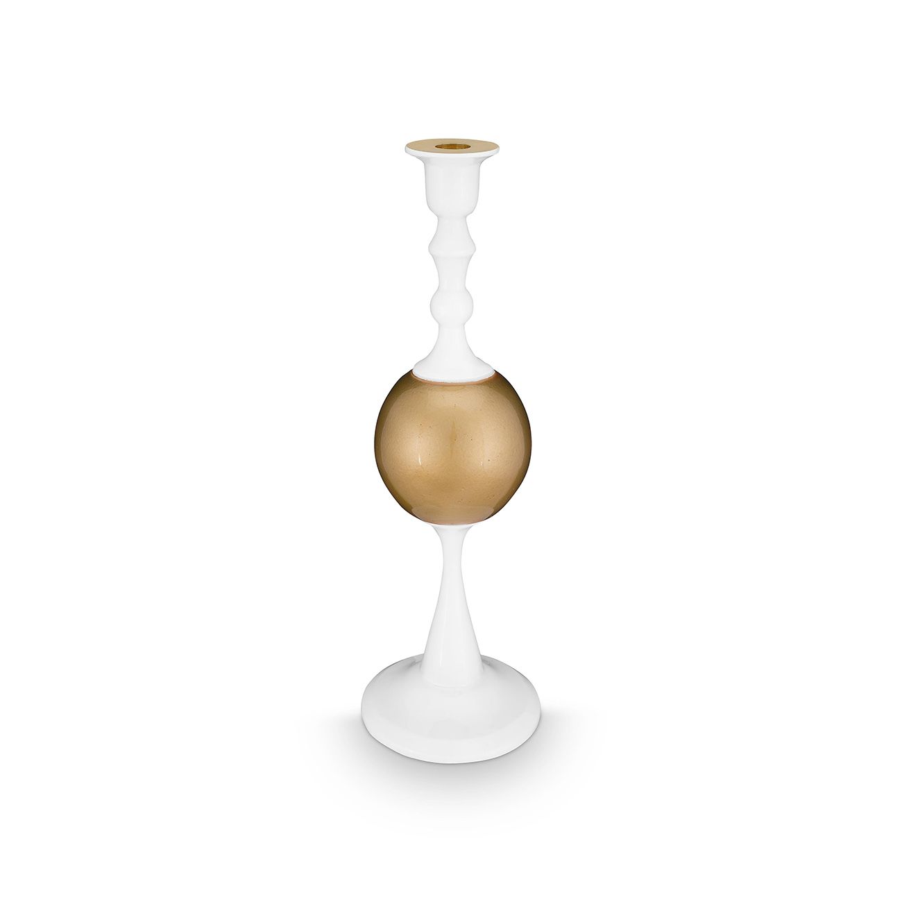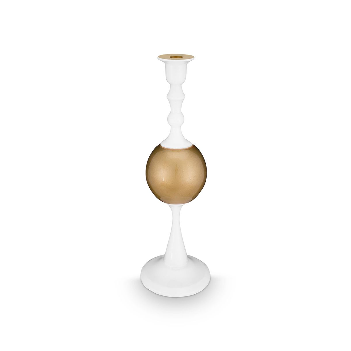 Този свещник внася уютна атмосфера във всяко пространство. Заоблените му форми придават спокоен и изискан вид. С височина от 37 см, той е истинска забележителност, която изглежда страхотно на маса или в очарователен ъгъл. Прекрасен сам по себе си, но още по-очарователен, когато се комбинира с другите размери.