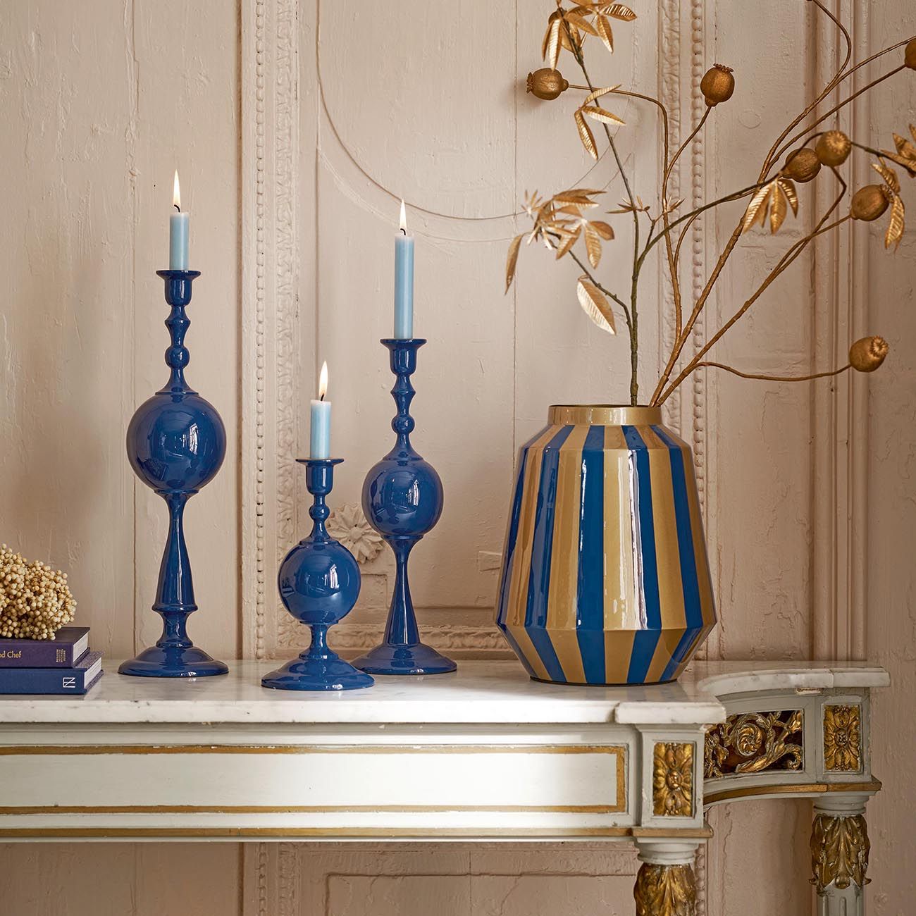 Този свещник внася уютна атмосфера във всяко пространство. Заоблените му форми придават спокоен и изискан вид. С височина от 37 см, той е истинска забележителност, която изглежда страхотно на маса или в очарователен ъгъл. Прекрасен сам по себе си, но още по-очарователен, когато се комбинира с другите размери.