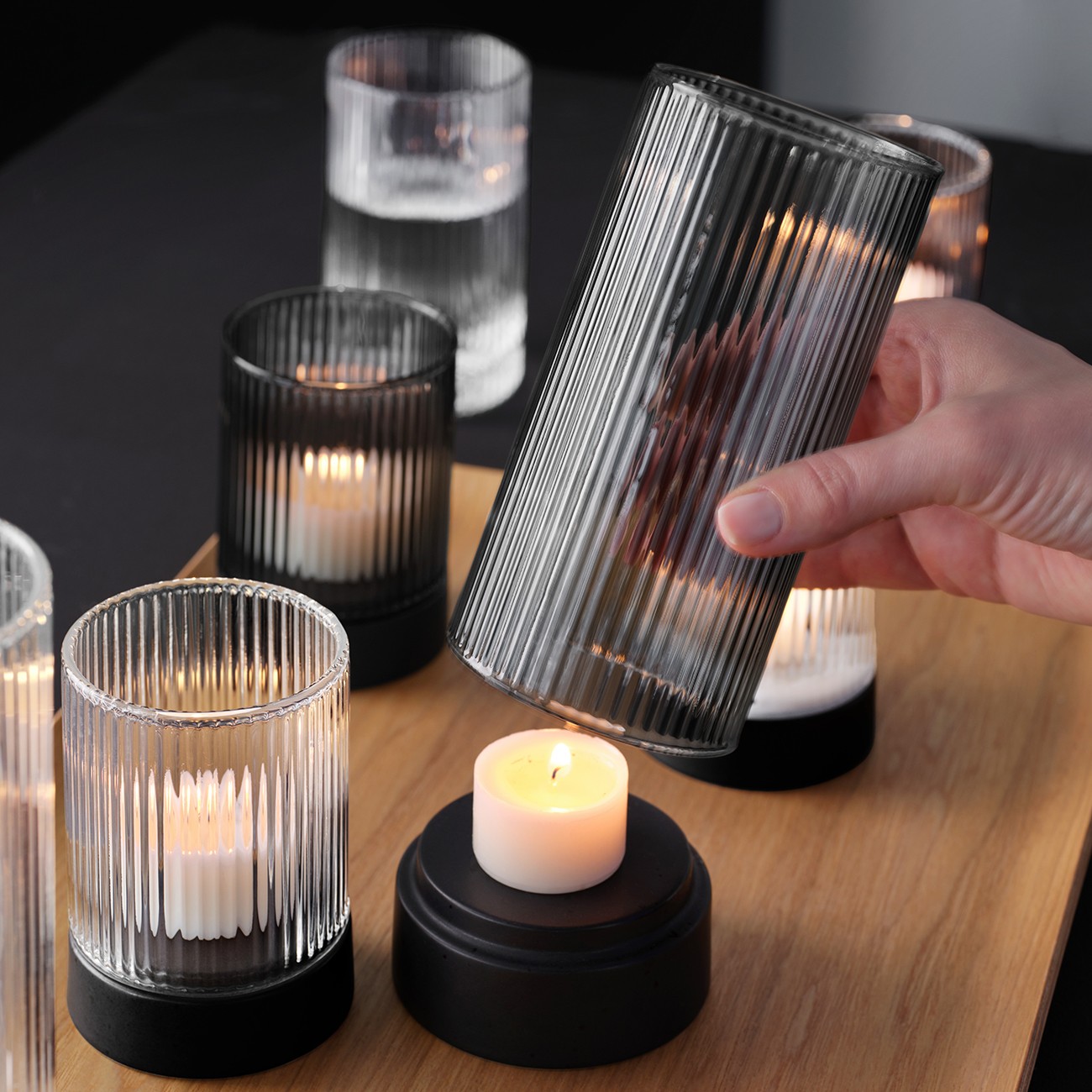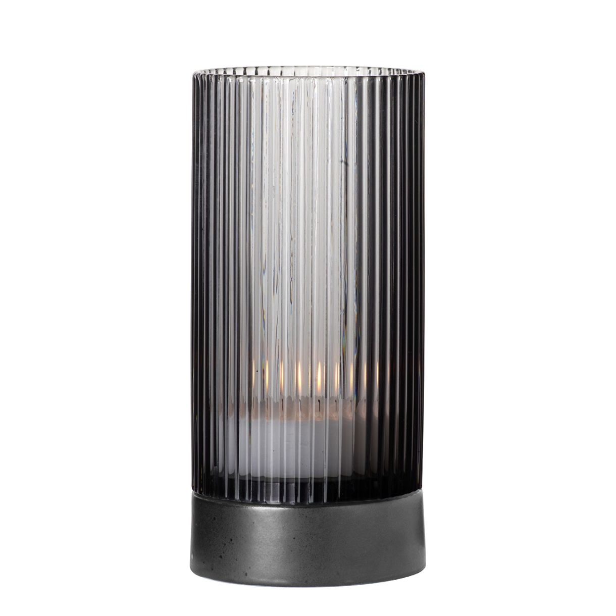 Свещник от леко боросиликатно стъкло с порцеланова основа. Дизайнът на набраздената повърхност създава искряща игра на светлина. Функционалните детайли са също толкова впечатляващи. Елегантната порцеланова основа гарантира, че дори топлината на горяща свещ не може да навреди на масата.