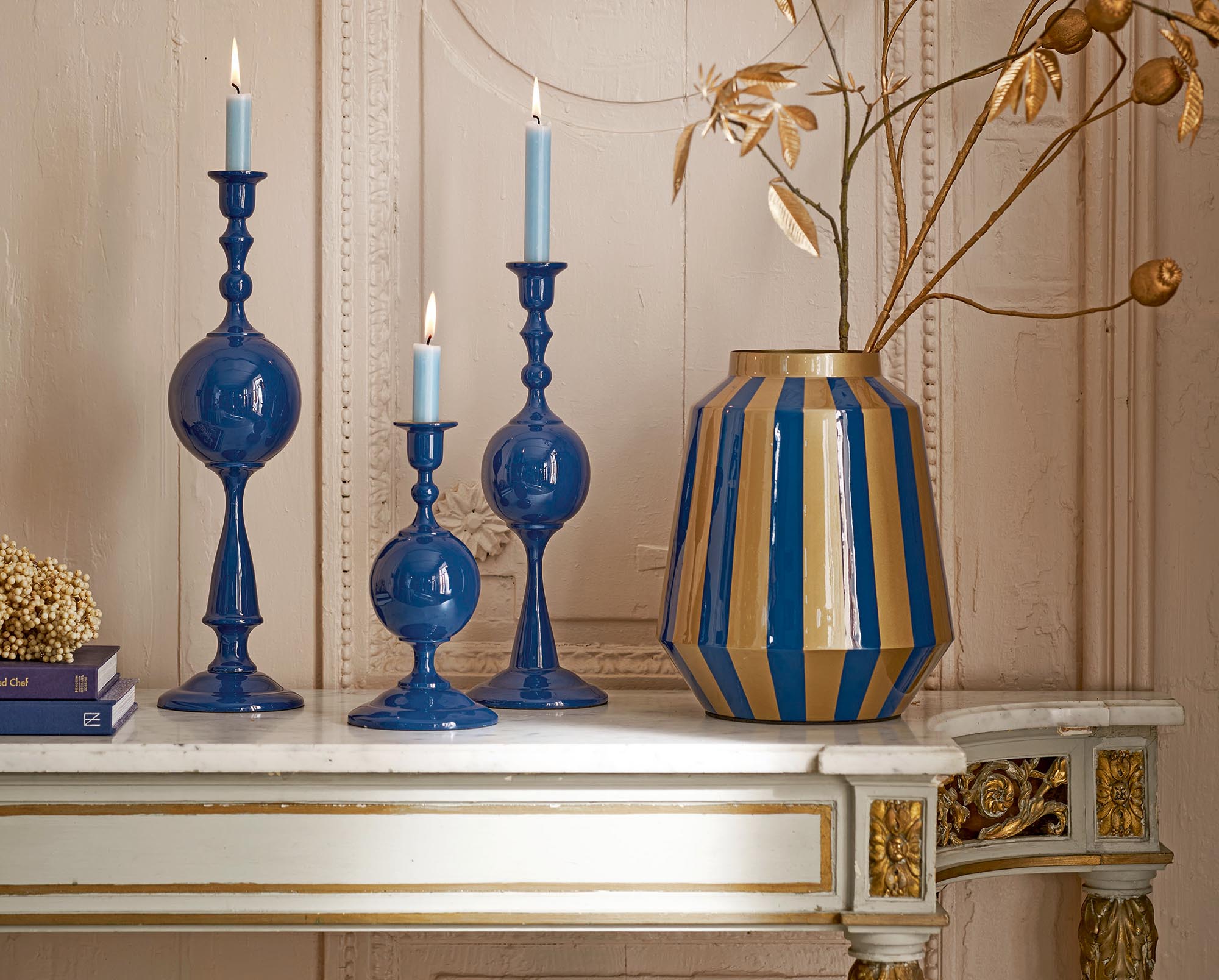 Този свещник внася уютна атмосфера във всяко пространство. Заоблените му форми придават спокоен и изискан вид. С височина от 44 см, той привлича вниманието и мигновено добавя атмосфера към вашия интериор. Прекрасен сам по себе си, но още по-очарователен, когато се комбинира с другите размери.