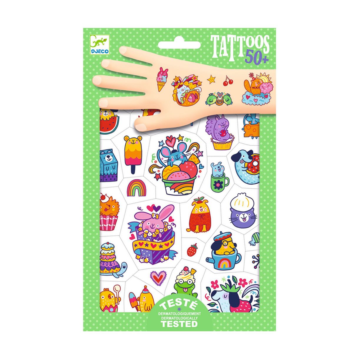 Децата обичат да имитират света на възрастните, именно затова DJECO представят този чудесен комплект татуировки. Той включва 50 броя красиви татуировки.