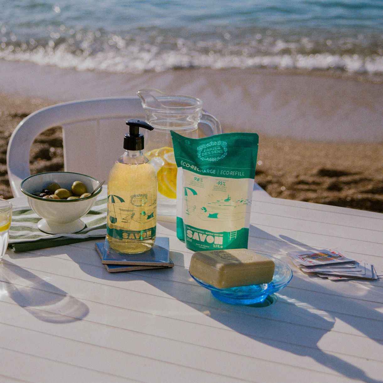 Продължете удоволствието от автентичния течен марсилски сапун с този пълнител „Олива“ от лимитираното издание 25 години Panier des Sens. Икономичен и отговорен формат, който запазва традициите на марсилските майстори сапунари.