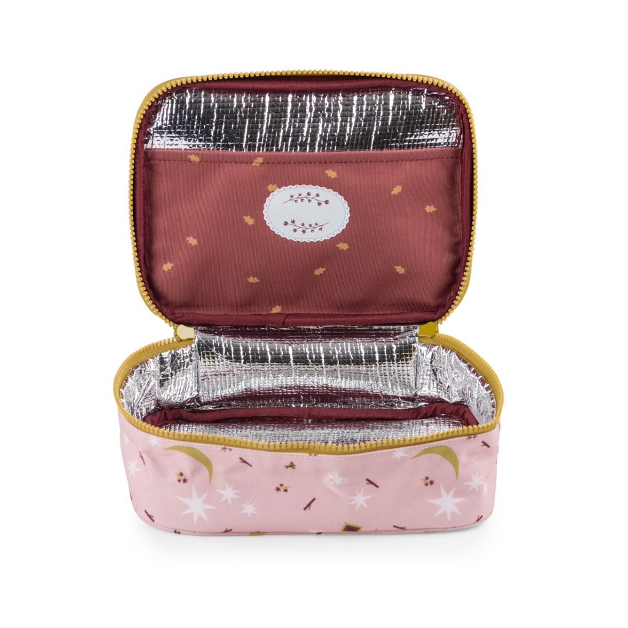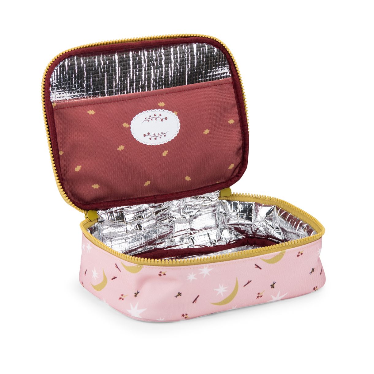 Красива термоизолирана чанта за обяд, идеална за съхранение на закуски и обяди на вашите малки за всяко приключение. Има удобен вътрешен джоб за прибори и салфетки, както и забавни малки ципове с формата на ягодки.