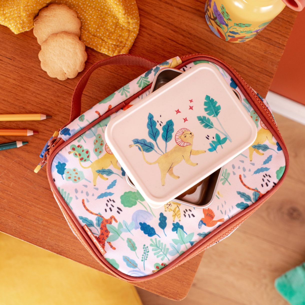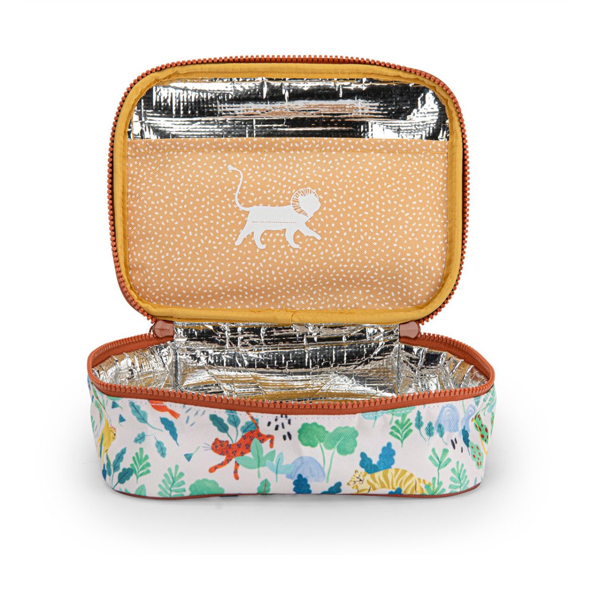 Красива термоизолирана чанта за обяд, идеална за съхранение на закуски и обяди на вашите малки за всяко приключение. Има удобен вътрешен джоб за прибори и салфетки, както и забавни малки ципове с форма на тукан.