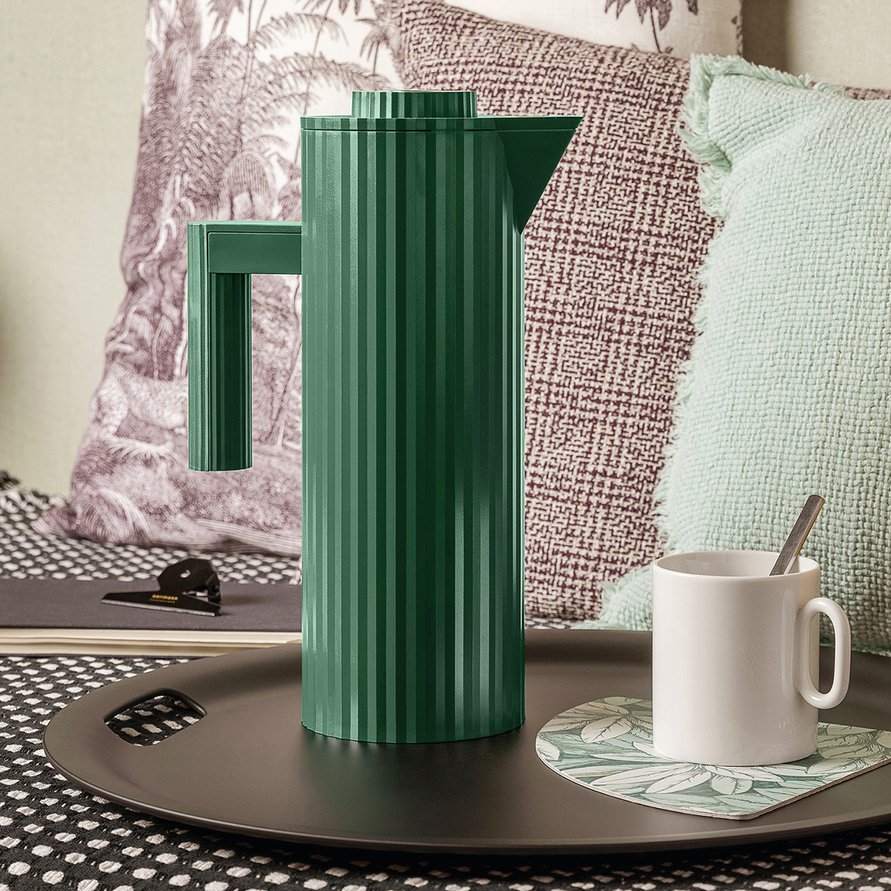 Изискана драперия облича тази термо кана, проектирана от Michele De Lucchi: съвпадащи геометрични линии и внимателна композиция на елементите, синтезират в един обект техническите изисквания, високата производителност и елегантността на костюм по мярка. Лека и лесна за използване, термо каната Plissé не крие голямата си практичност, интегрирайки я с емблематична и вечна форма.