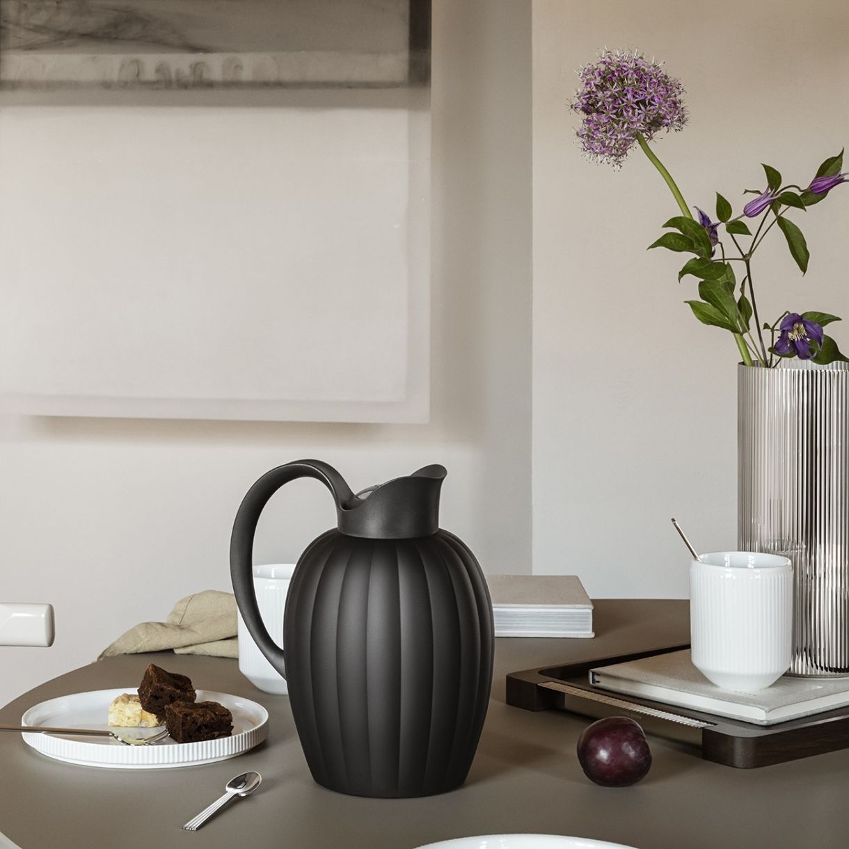 Емблематичната термо кана Bernadotte е преосмислена в тази специална версия на класическия дизайн. Запазвайки характерната форма и набраздения дизайн, новата кана се предлага в елегантно черно. Каната разполага със здрава вътрешна облицовка от неръждаема стомана, която ще ви помогне да запазите съдържанието топло или охладено за по-дълго време. Капакът на каната е с удобен бутон, който не изисква горната част да се отвинтва при наливане на напитки.