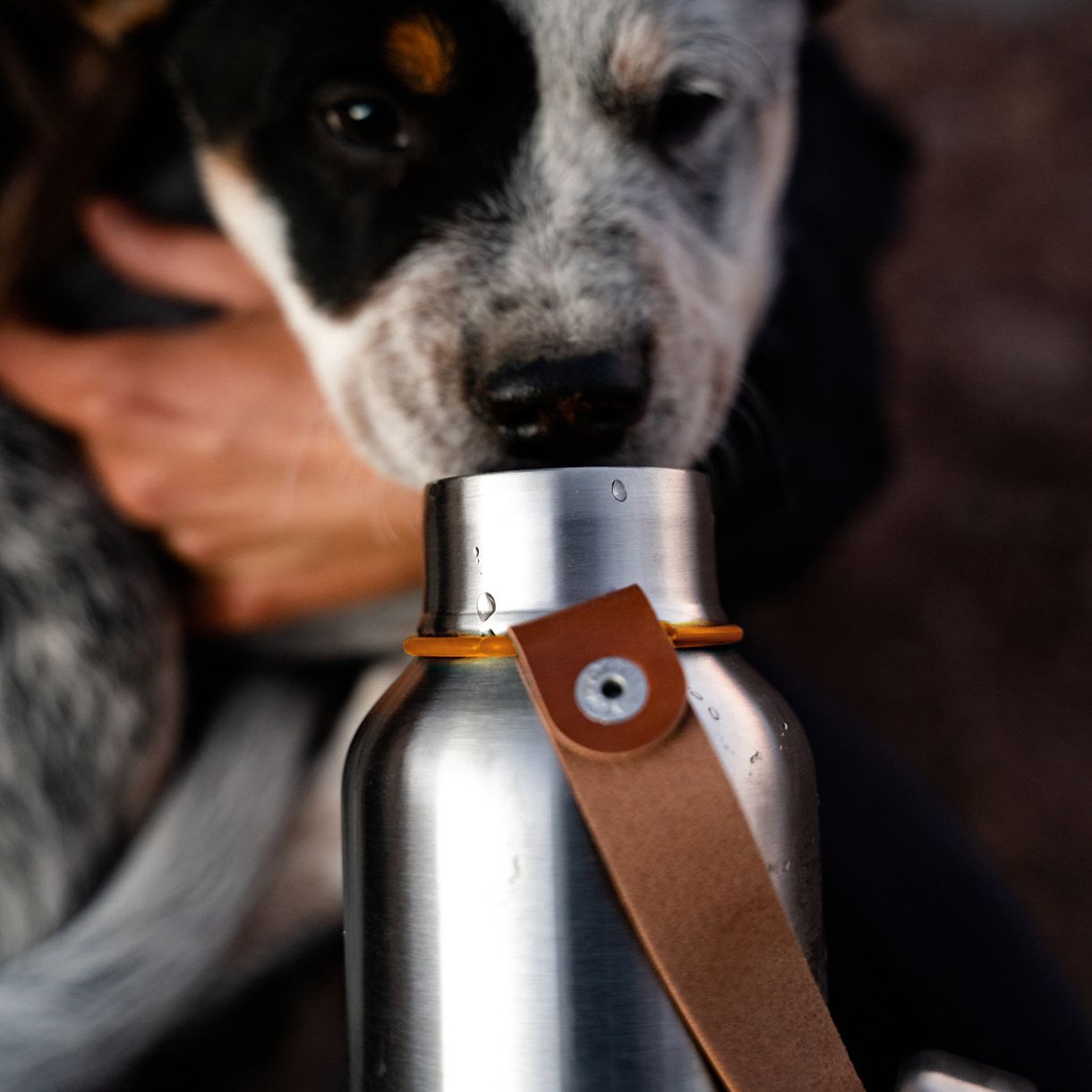 На пазара има много бутилки за вода, но много от тях изглеждат еднакви и разчитат на модни цветове и шарки/графики, за да им придадат привлекателност. Тази бутилка е създадена с дизайн, който е по-уникален и вечен. Семплата форма от полирана неръждаема стомана, контрастираща с каишката от еко кожа, й придава модерна ретро привлекателност. Всички драскотини или вдлъбнатини само ще допринесат за нейния чар с напредване на възрастта. Единствения намек за цвят е в силиконовото уплътнение и пръстена, който държи каишката, за да се гарантира, че фокусът е върху материалите. Тази бутилка е предназначена да се използва всеки ден във всяка среда.