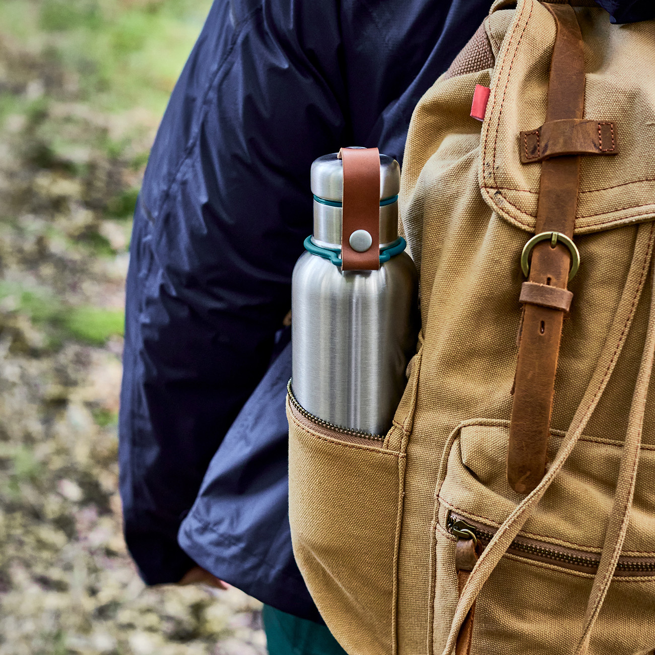 На пазара има много бутилки за вода, но много от тях изглеждат еднакви и разчитат на модни цветове и шарки/графики, за да им придадат привлекателност. Тази бутилка е създадена с дизайн, който е по-уникален и вечен. Семплата форма от полирана неръждаема стомана, контрастираща с каишката от еко кожа, й придава модерна ретро привлекателност. Всички драскотини или вдлъбнатини само ще допринесат за нейния чар с напредване на възрастта. Единствения намек за цвят е в силиконовото уплътнение и пръстена, който държи каишката, за да се гарантира, че фокусът е върху материалите. Тази бутилка е предназначена да се използва всеки ден във всяка среда.