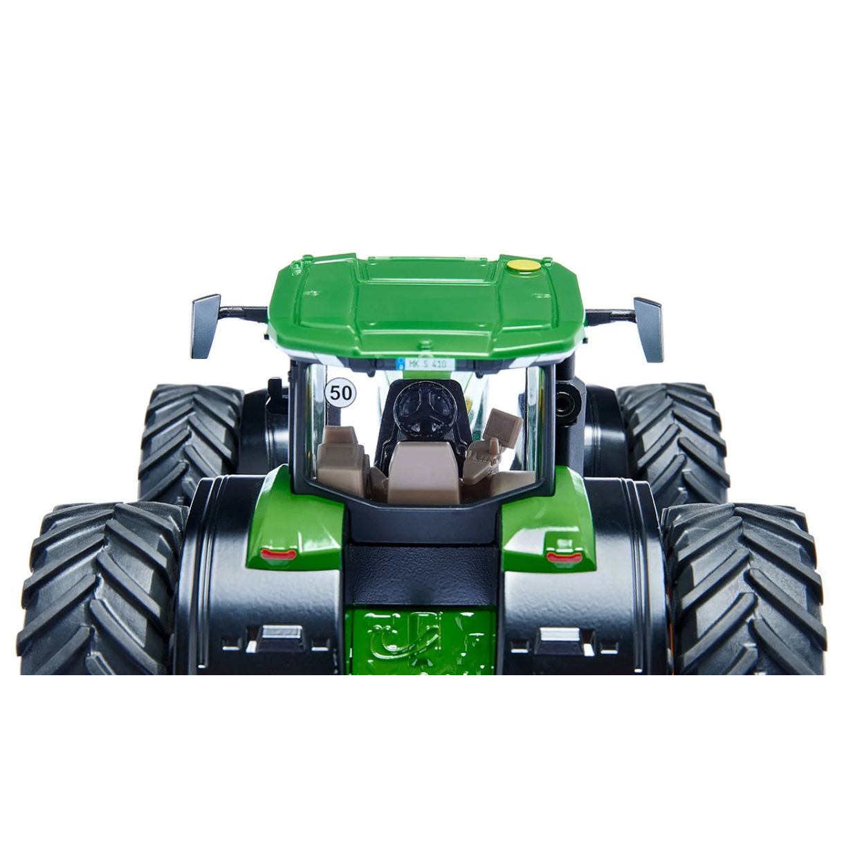 Масивен трактор със скачащ елен - John Deere 8R 370 е мощен агрегат в полето, а на пътя е удобен транспортен трактор. Като модел в мащаб 1:32, големият трактор с многобройните си детайли е победител. Предният теглич сега също може да бъде премахнат и заменен много лесно от предоставената предна тежест. Това осигурява допълнителни възможности за игра към функциите на задния теглич. Тракторът може да се управлява с помощта на волана, просто като се свали кабината. Предният капак се отваря, осигурявайки изглед към мощния шестцилиндров двигател.