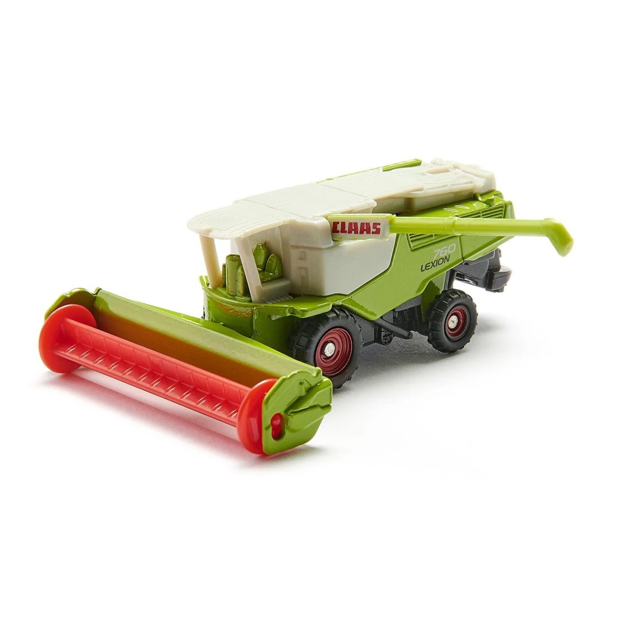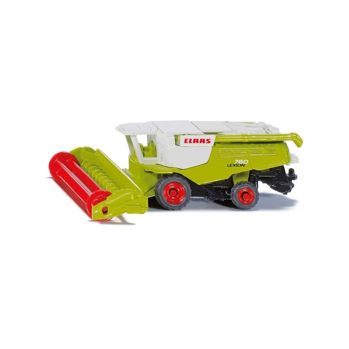 Гигантският Claas Lexion 760 в мини размер за игра. Класическият зелен модел с метална конструкция е с подвижна макара и въртяща се изпускателна тръба. Моделът се движи на гуми с гумирани грайфери и верен на оригинала профил.