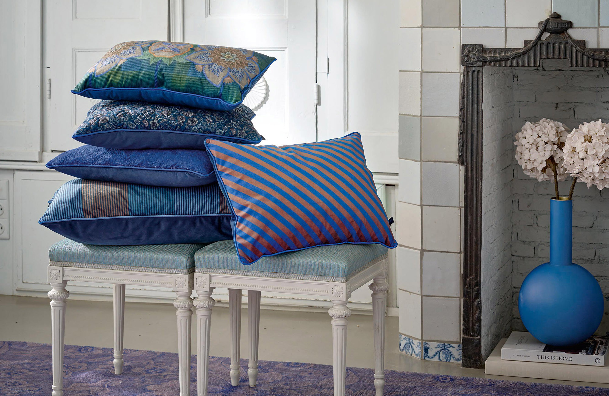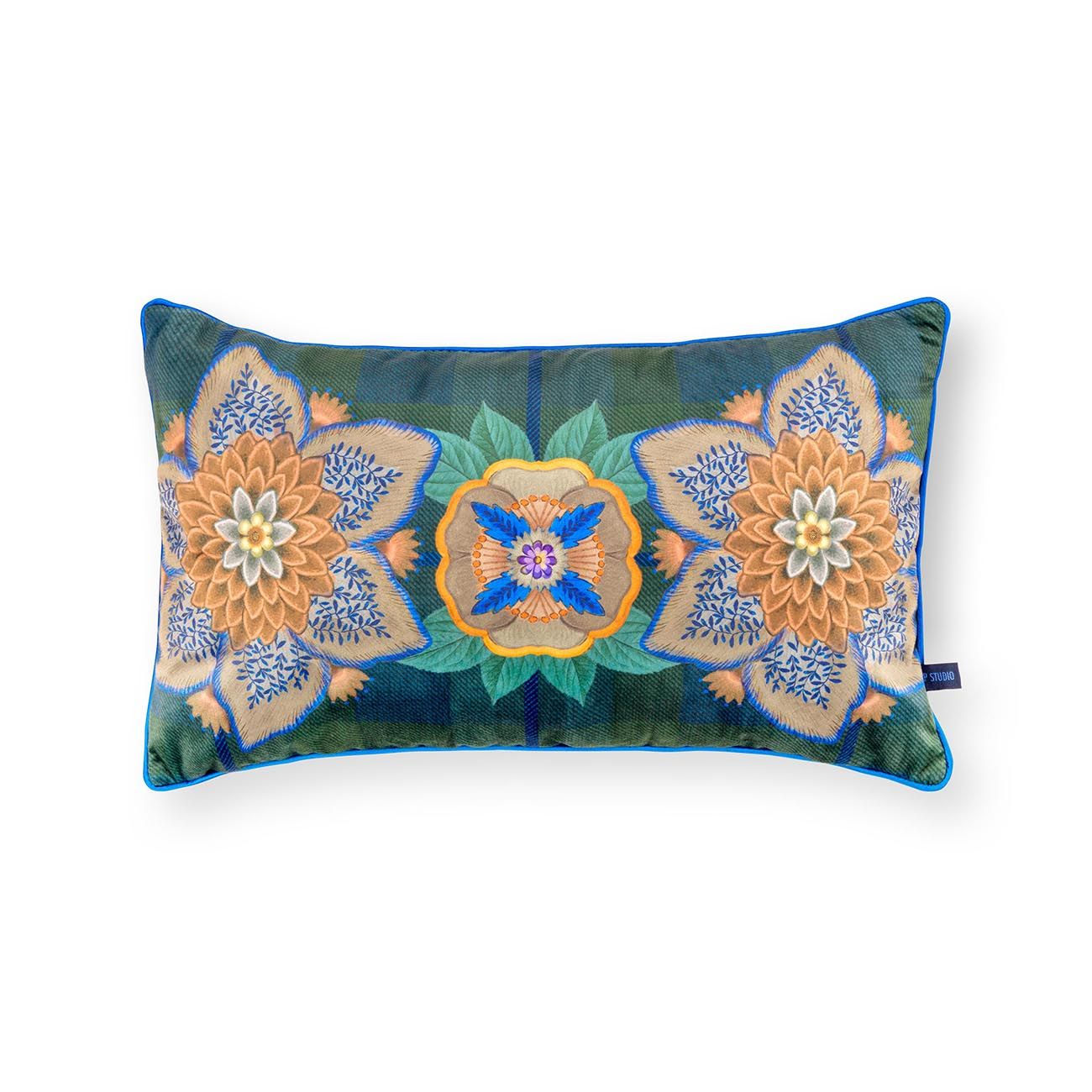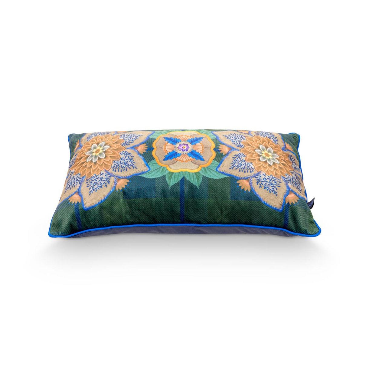 Тази възглавница от колекция Flores Felices ще внесе мигновен щрих и радост във вашия дом. Свежият син фон създава представа за пищен флорален мотив в топли, живи тонове. Всеки детайл е внимателно проектиран, придавайки на възглавницата игрив, но елегантен вид. Перфектна е като акцент на диван, стол или легло и е красиво съчетана с други щампи и текстури за истински интериор в стил Pip.