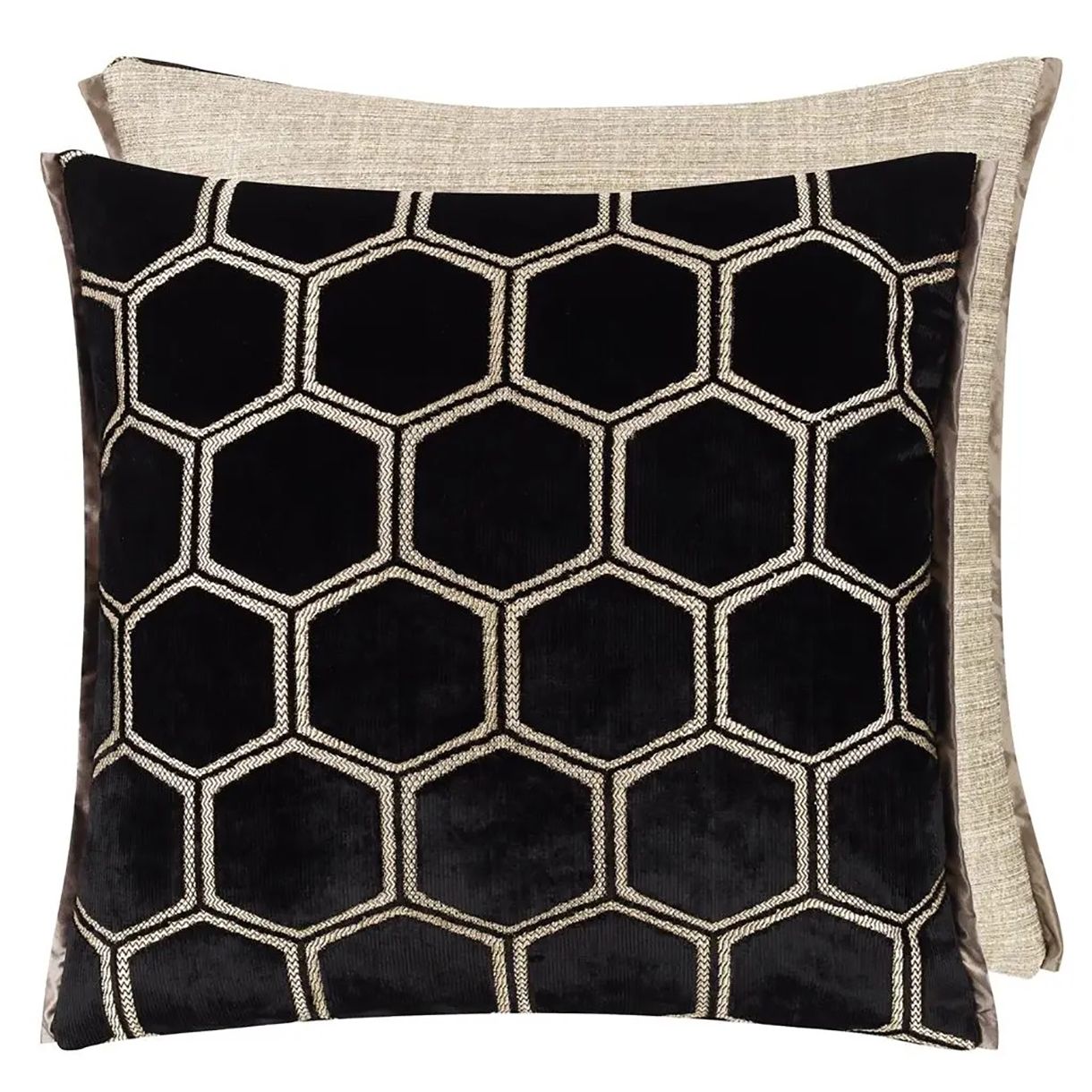 Превърнете интериора си в образец на съвременния лукс с декоративната възглавница Manipur от Designers Guild. Този емблематичен модел е изработен от кадифе с впечатляващ шестоъгълен геометричен десен, който създава уникална дълбочина и текстура. Лицевата част привлича погледа с изтънчения си блясък, а гърбът е завършен със структурна дамаска имитираща коприна. Manipur е перфектният избор за добавяне на модерен акцент и усещане за висок клас във всяка стая. Елегантна, издръжлива и винаги актуална – истинска класика в дизайнерския текстил.