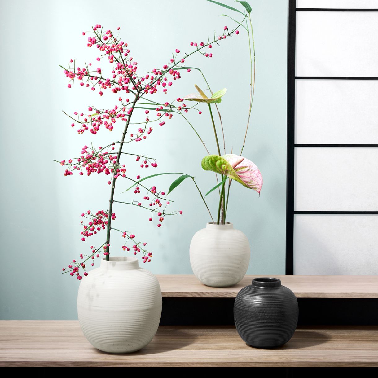 Хармоничната комбинация от скандинавски дизайн и японска минималистична естетика се превърна в жива тенденция сама по себе си. Колекция Japandi впечатлява с изключително спокойния си дизайнерски език. Тя е подчертана от фин набразден релеф, който се усеща и вижда от външната страна на вазите и от вътрешната и външната страна на купите. Перфектната хармония на двата дизайнерски свята се отразява и в полуматовите реакционни глазури.