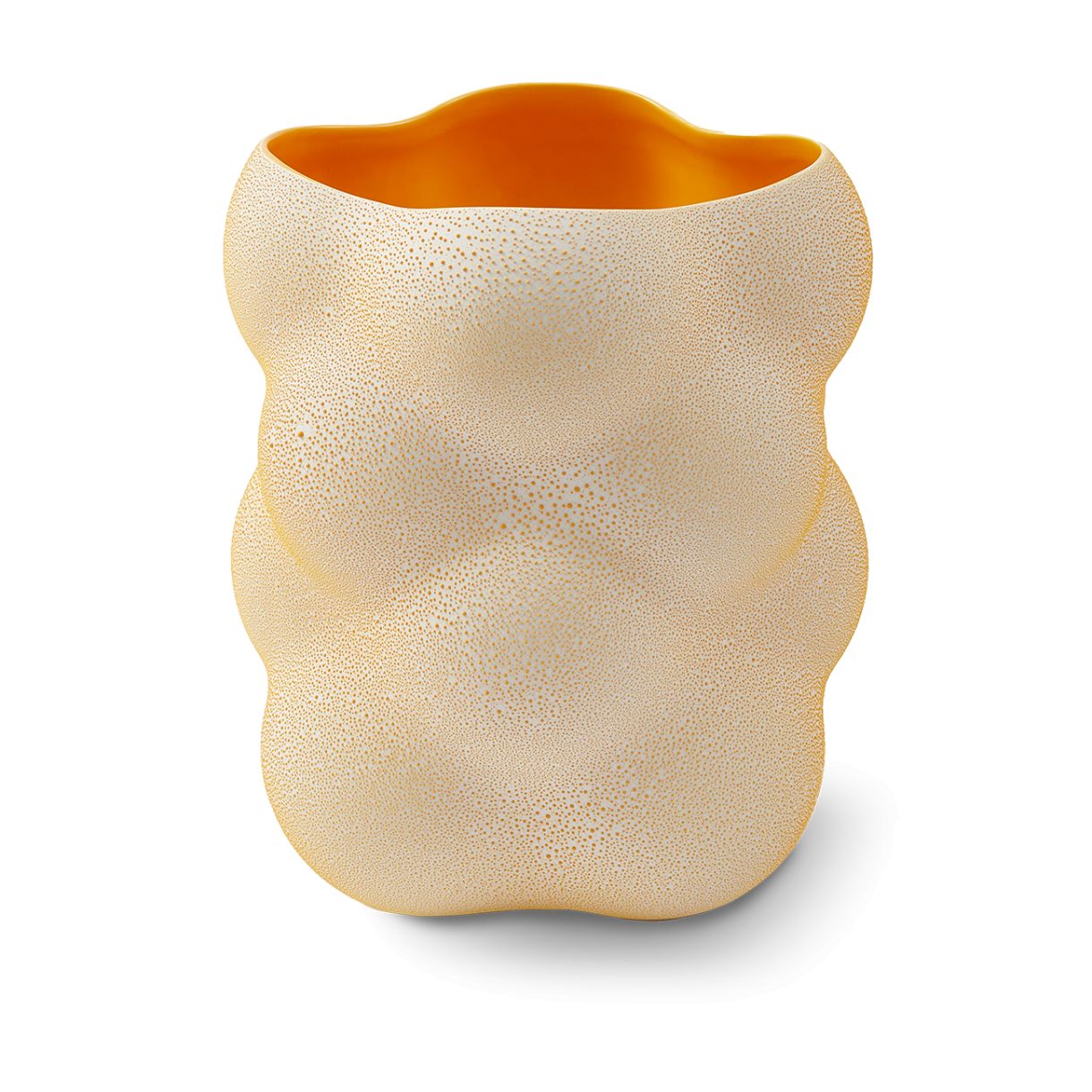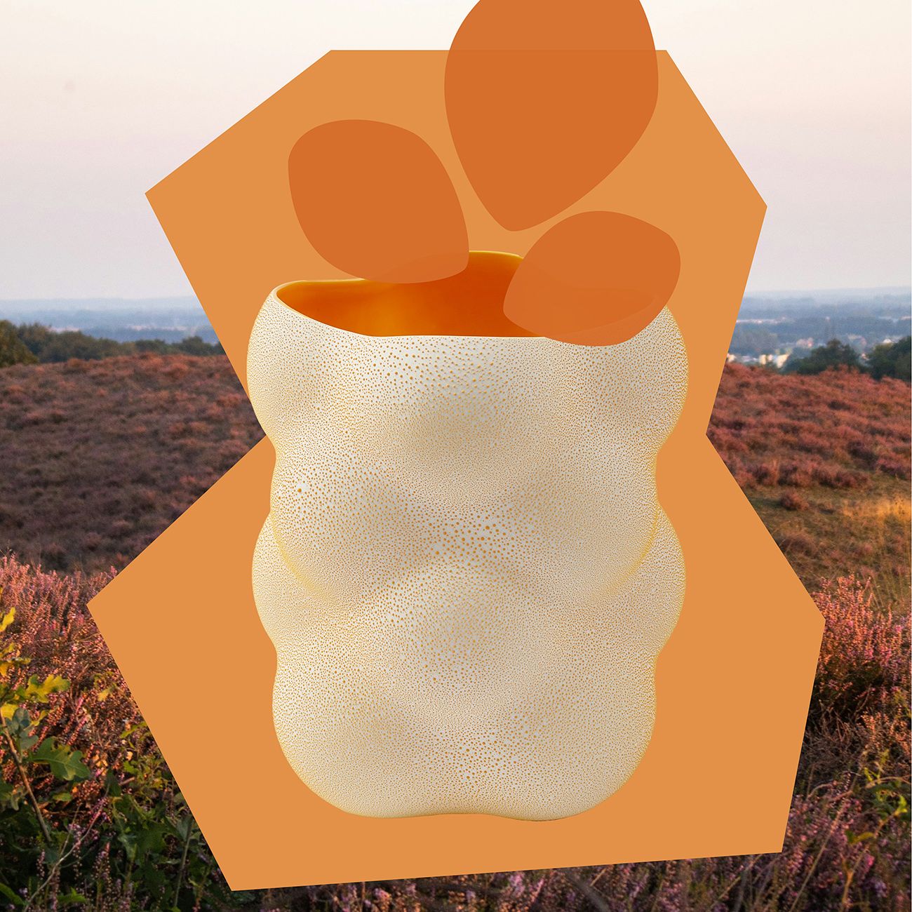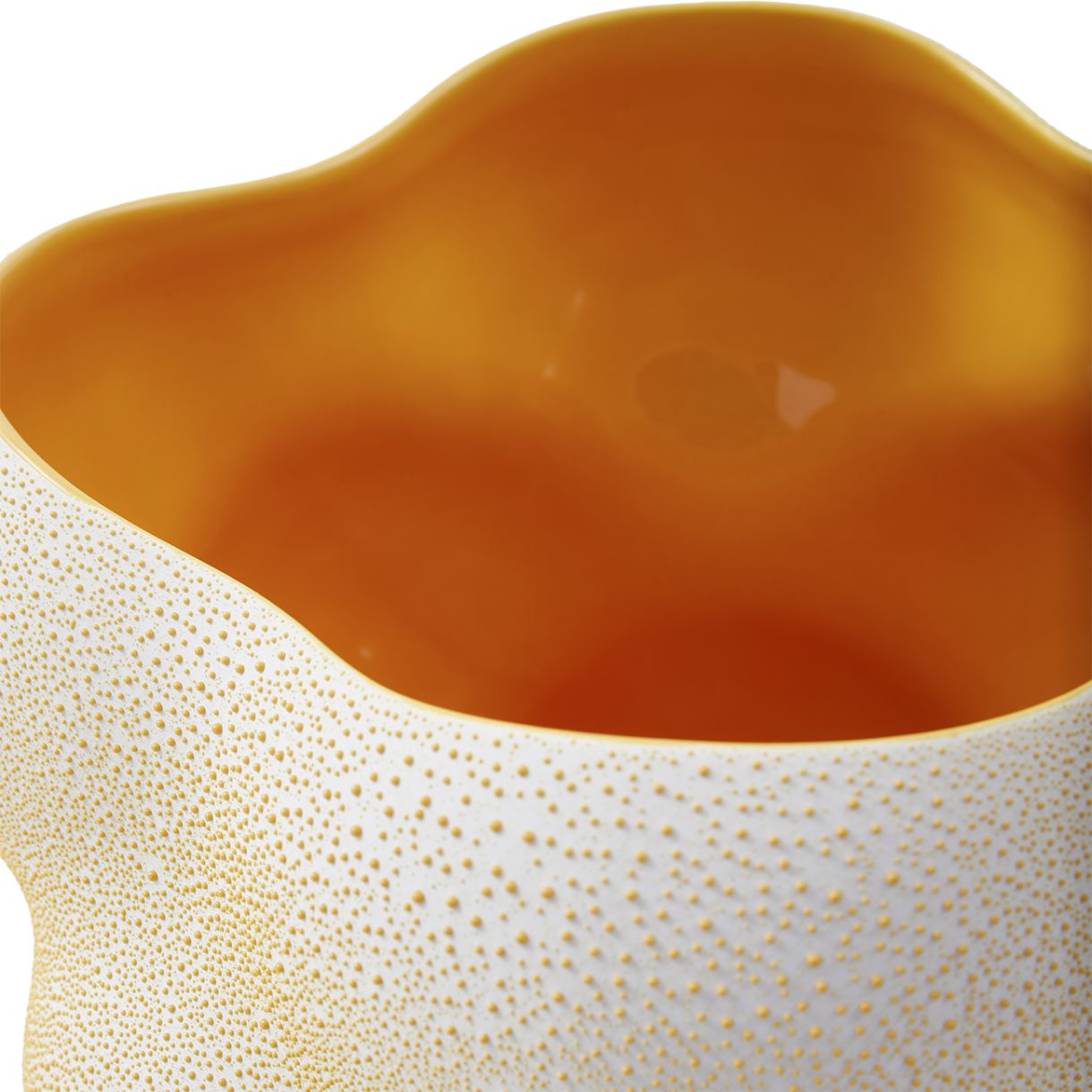 Изработена от пъстра керамика и предлагана в ярки нюанси на оранжево и тъмнозелено, тази ваза влива във всяко пространство смел цветен акцент.