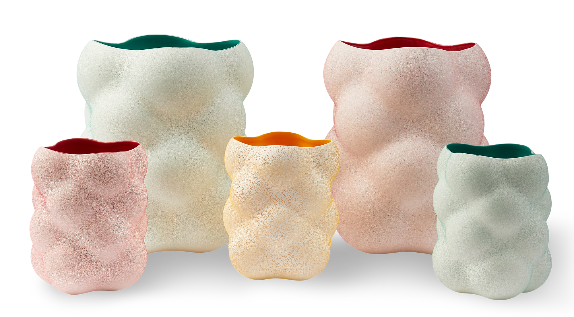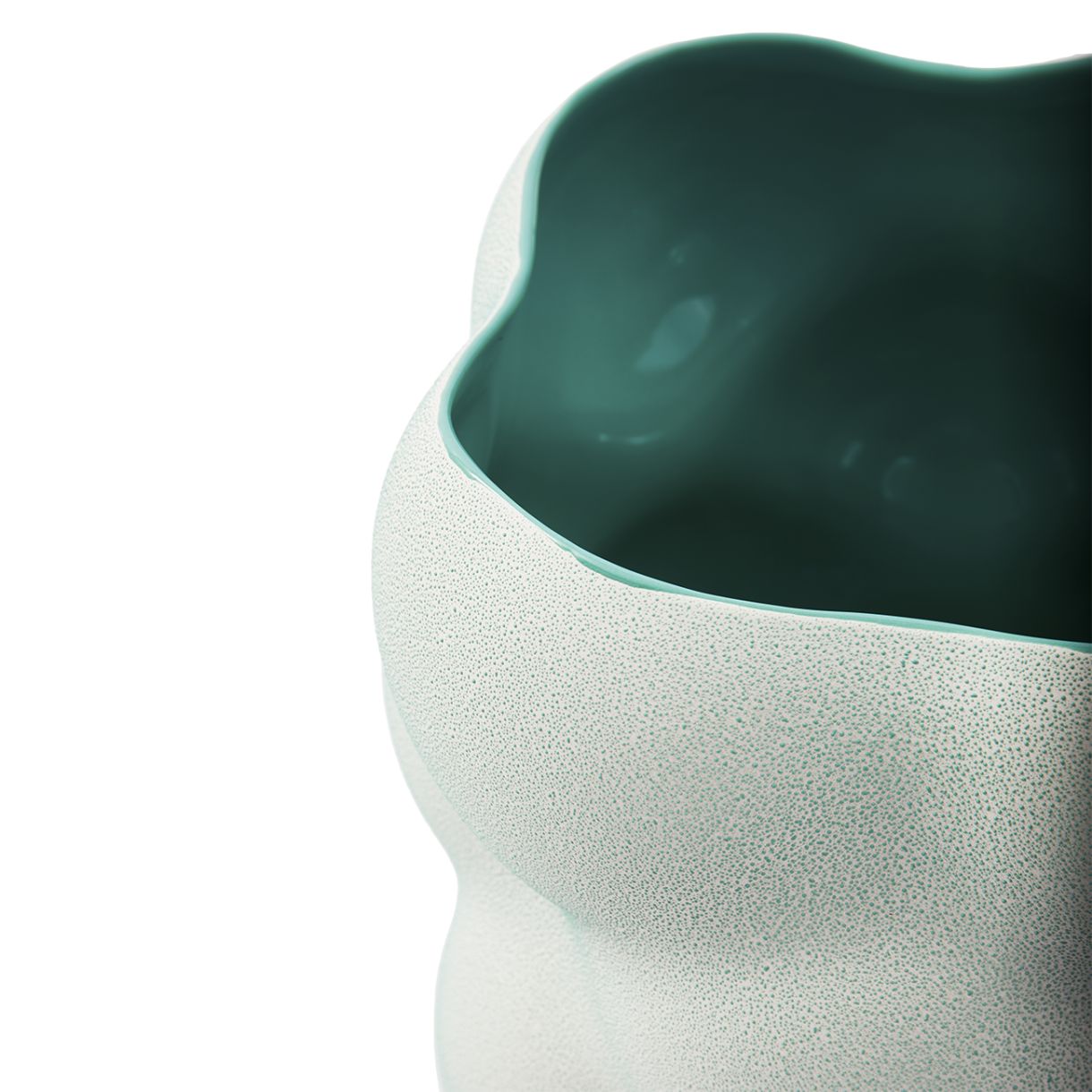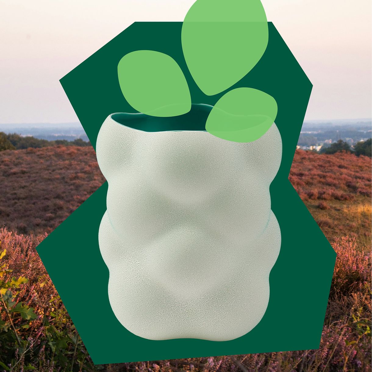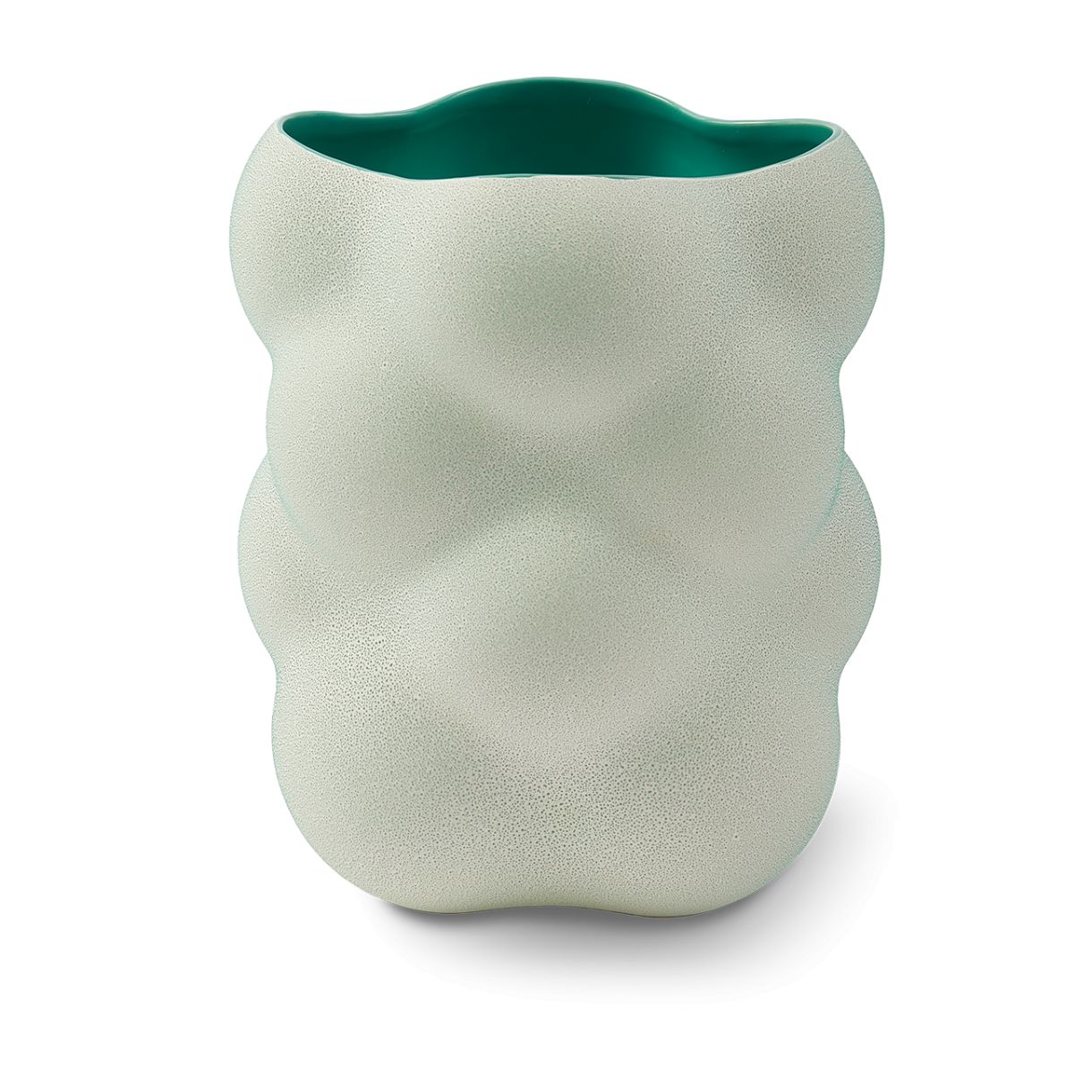 Изработена от пъстра керамика и предлагана в ярки нюанси на оранжево и тъмнозелено, тази ваза влива във всяко пространство смел цветен акцент.