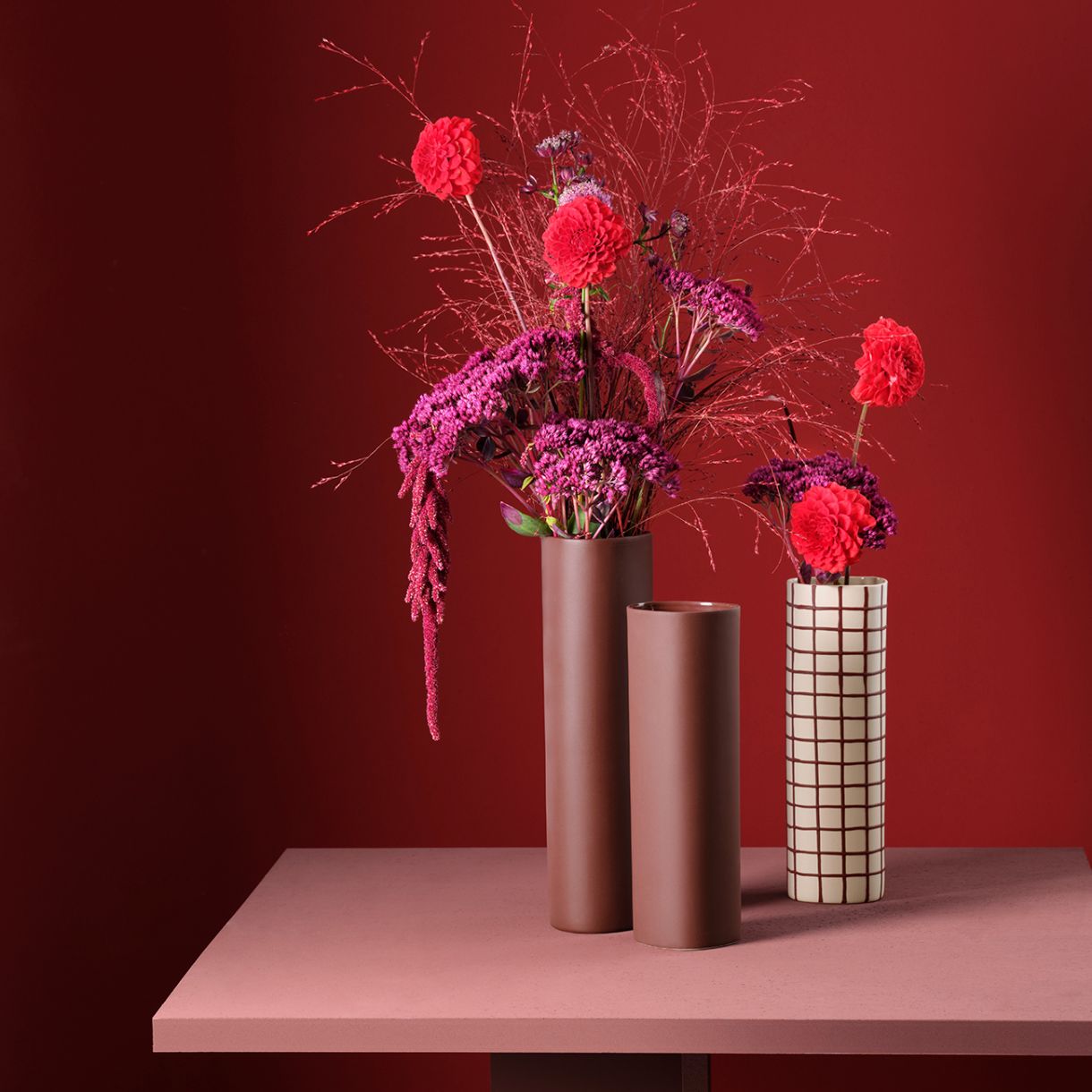 Вазите Lines & Squares впечатляват със своя модерен, геометричен дизайн и висококачествена изработка. Всяка ваза е декорирана и глазирана на ръка, създавайки деликатни линии и квадрати, които правят всяка ваза наистина уникална. Вдъхновена от природата колекция, Lines & Squares се предлага в екрю, бордо и зелен цвят, както в едноцветни, така и с кариран мотив.