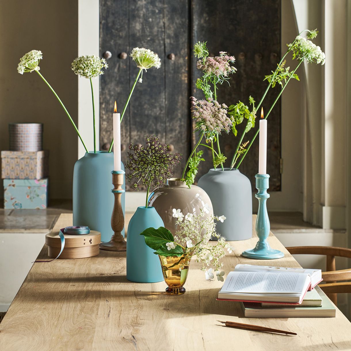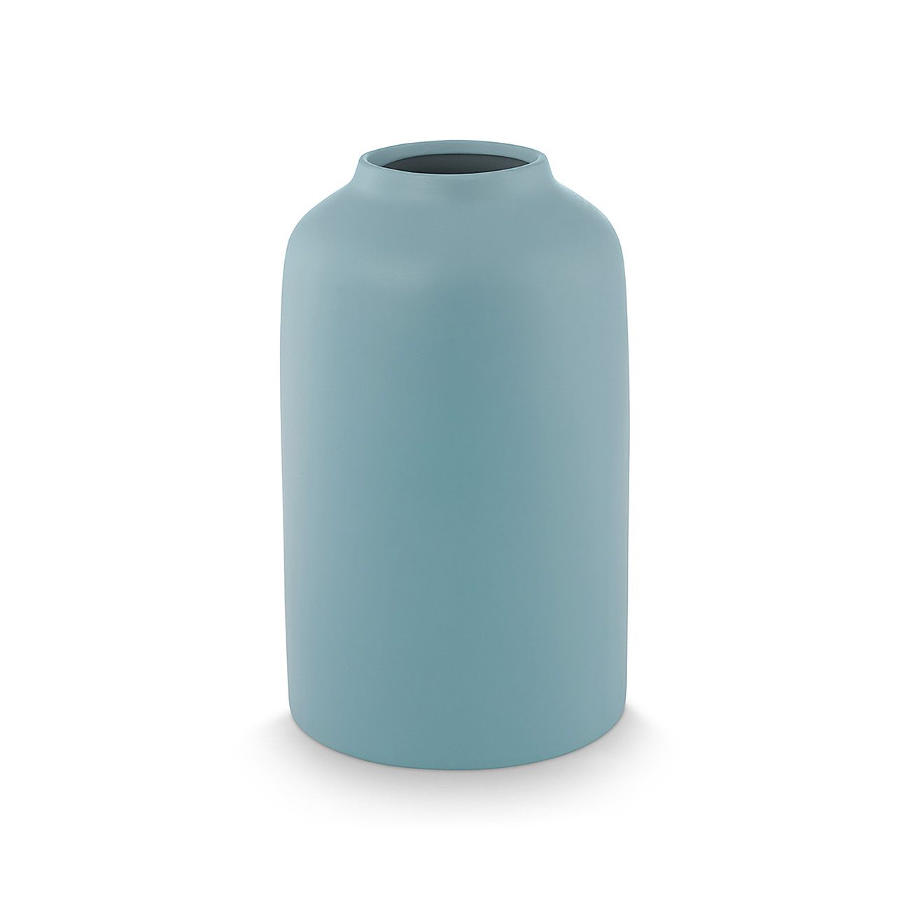 Нека цветята и клонките блестят в тази ваза на PIP Studio. Тя се отличава с елегантна, модерна форма и матово наситено синьо покритие, което носи усещане за спокойствие и елегантност. Идеална е за малък букет, няколко единични цвята или просто като декоративен предмет. Матовото покритие я прави чудесна както за модерен, така и за класически интериор. Комбинирайте с други вази в различни цветове и размери за игрив ефект. Препоръчително е вазата да се почиства с влажна кърпа и водата да се сменя на всеки 6 дни, за да се предотврати окисляване.