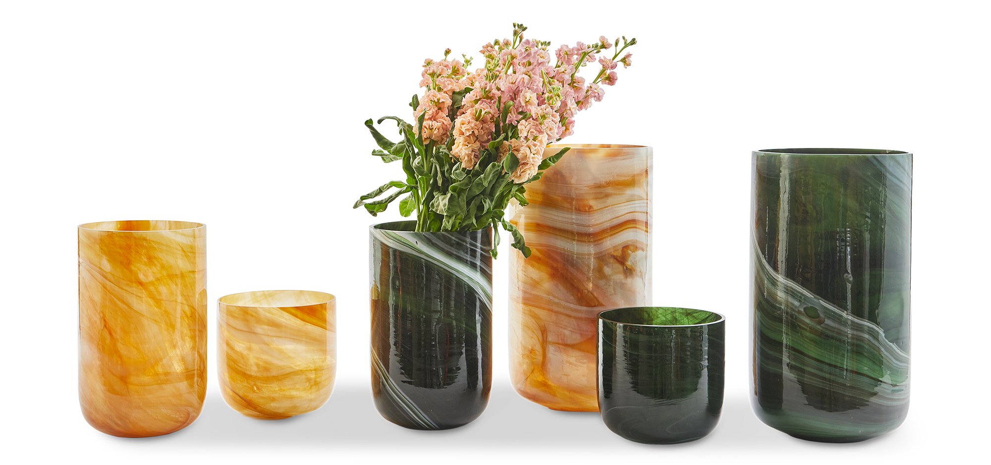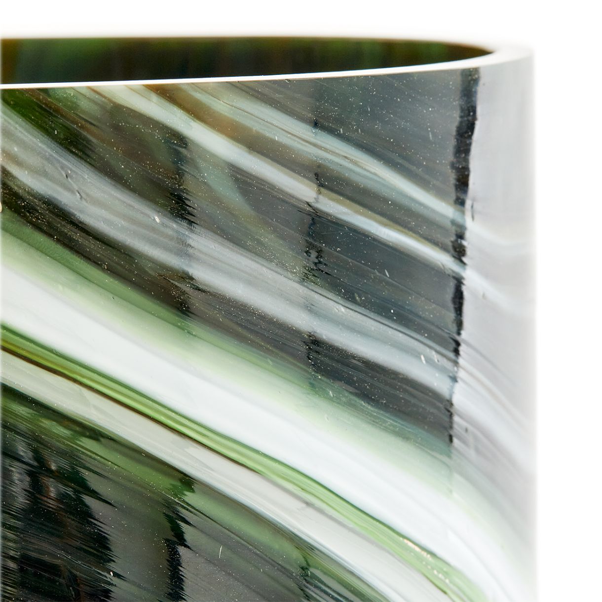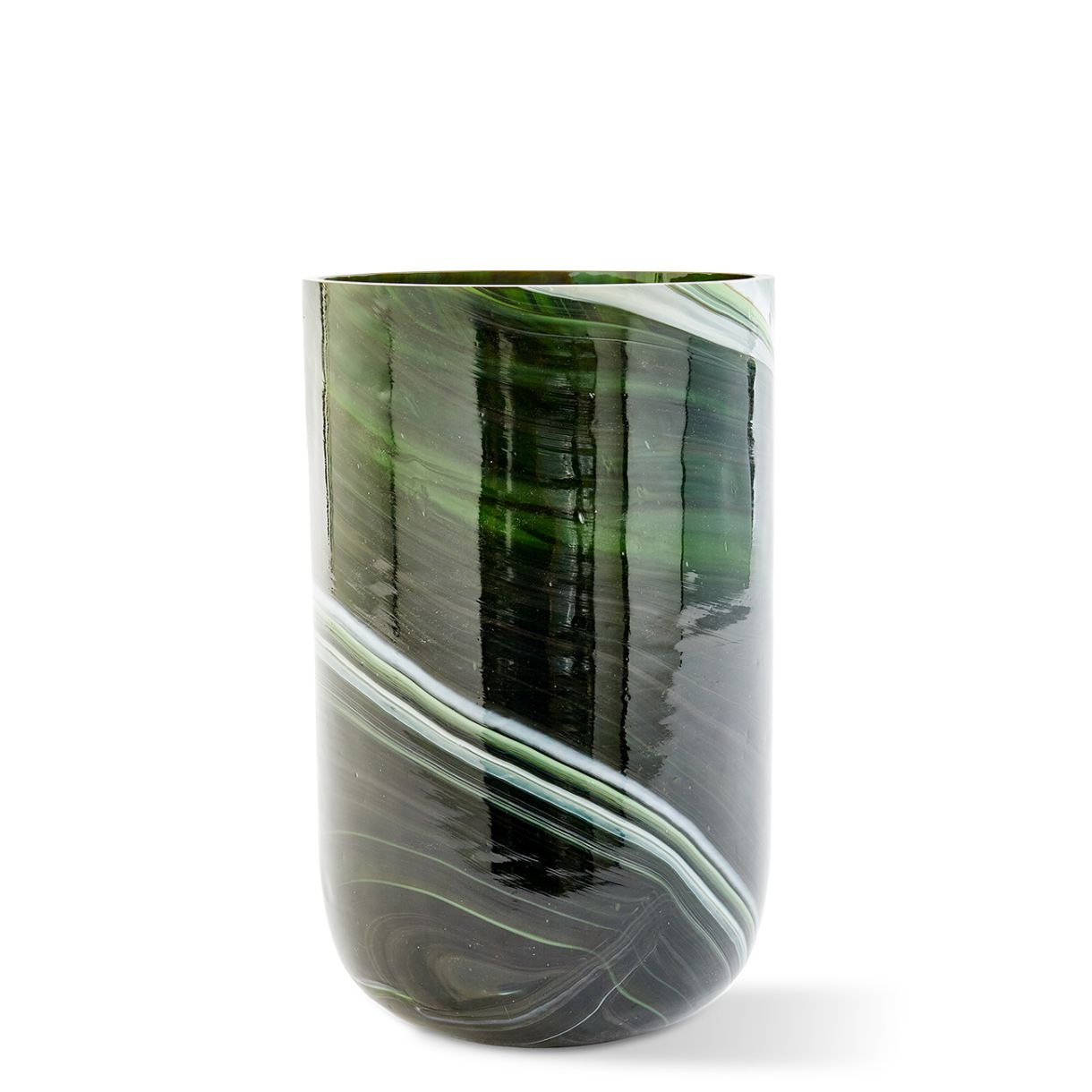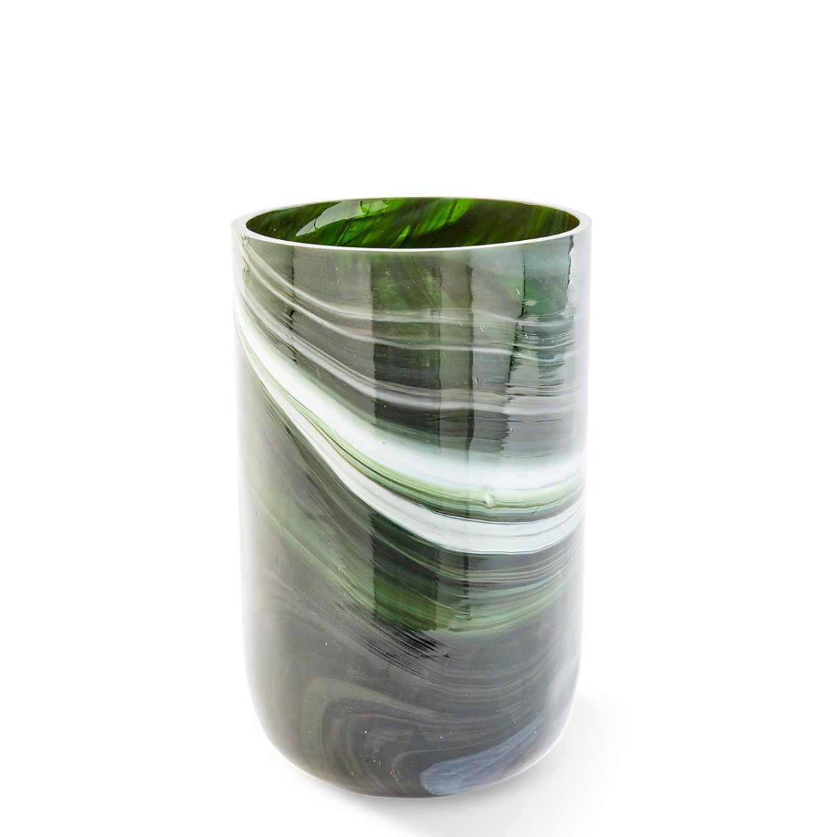 Вазата от мраморно стъкло вдъхва живот на всяко пространство. Всяка ваза е изработена на ръка от два цвята: наситено нефритено зелено смесено с меко бяло. Резултатът? Впечатляващо взаимодействие на тонове и линии, което превръща всяка ваза в привличащ окото предмет. Едновременно впечатляваща и семпла, тази ваза не се нуждае от нищо друго.