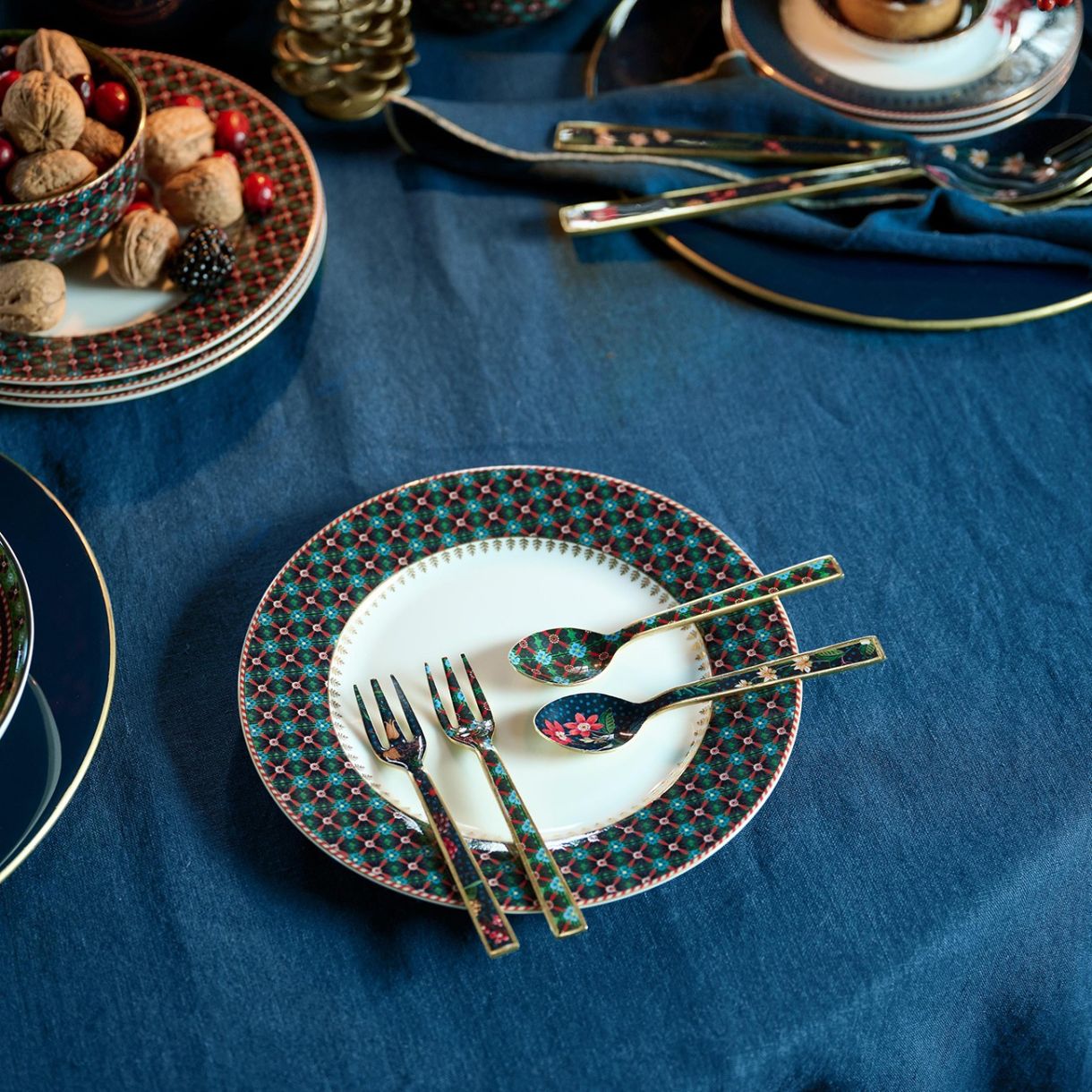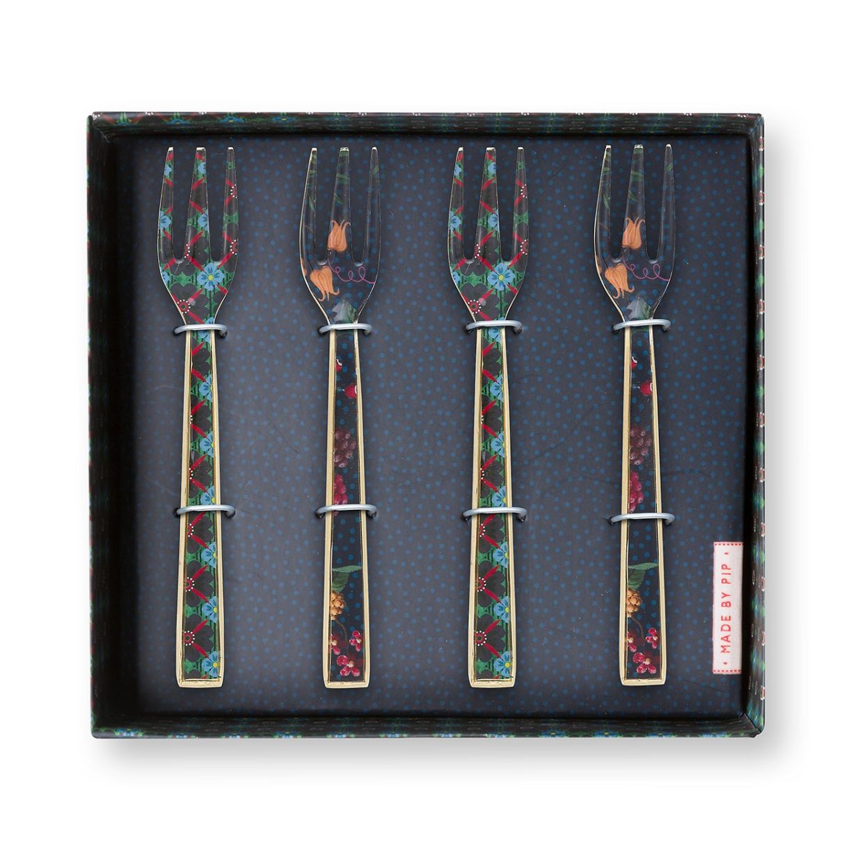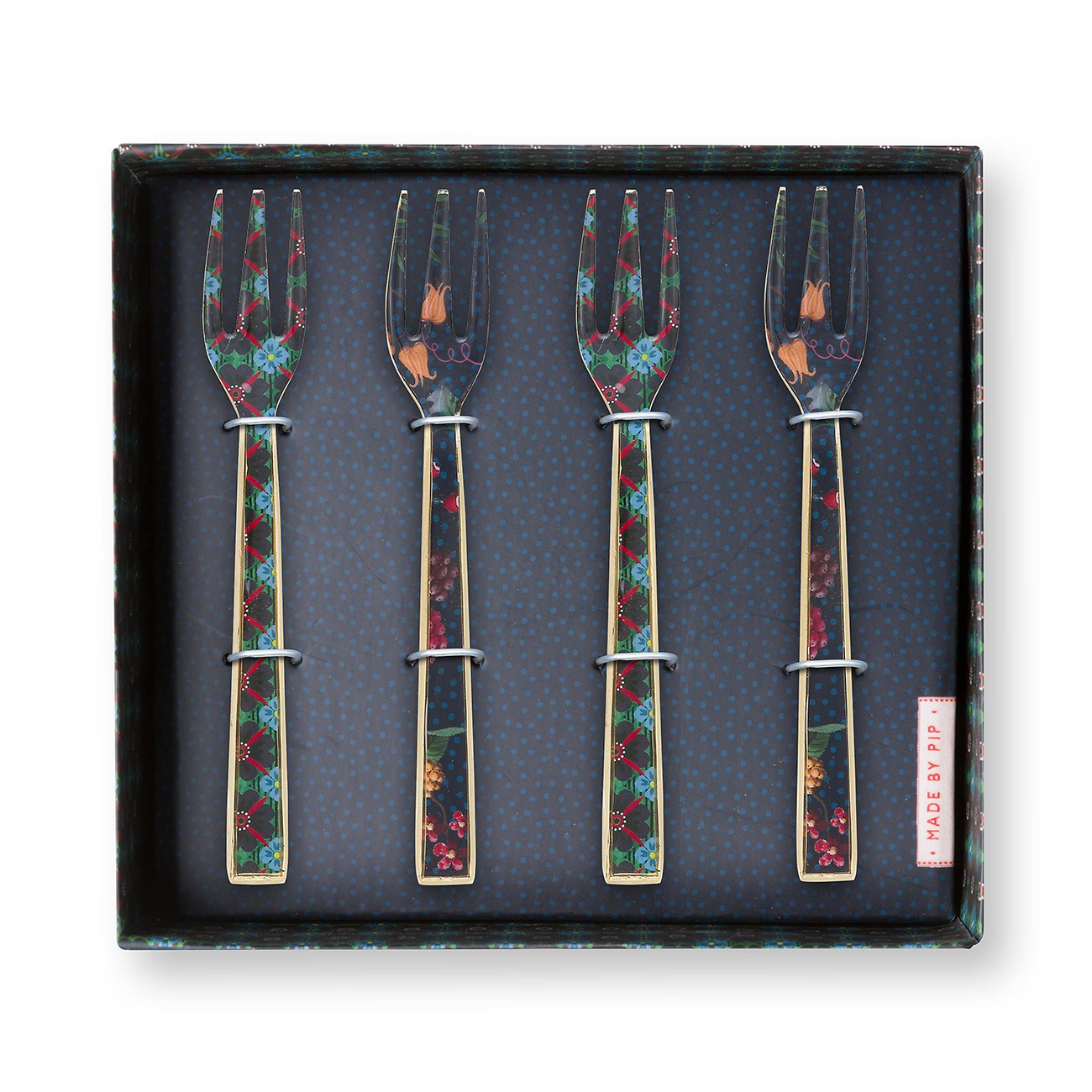 Този комплект вилици е част от колекция Berry Blues. Идеален за торта или други сладкиши. Вилиците са емайлирани и завършени със златен ръб.