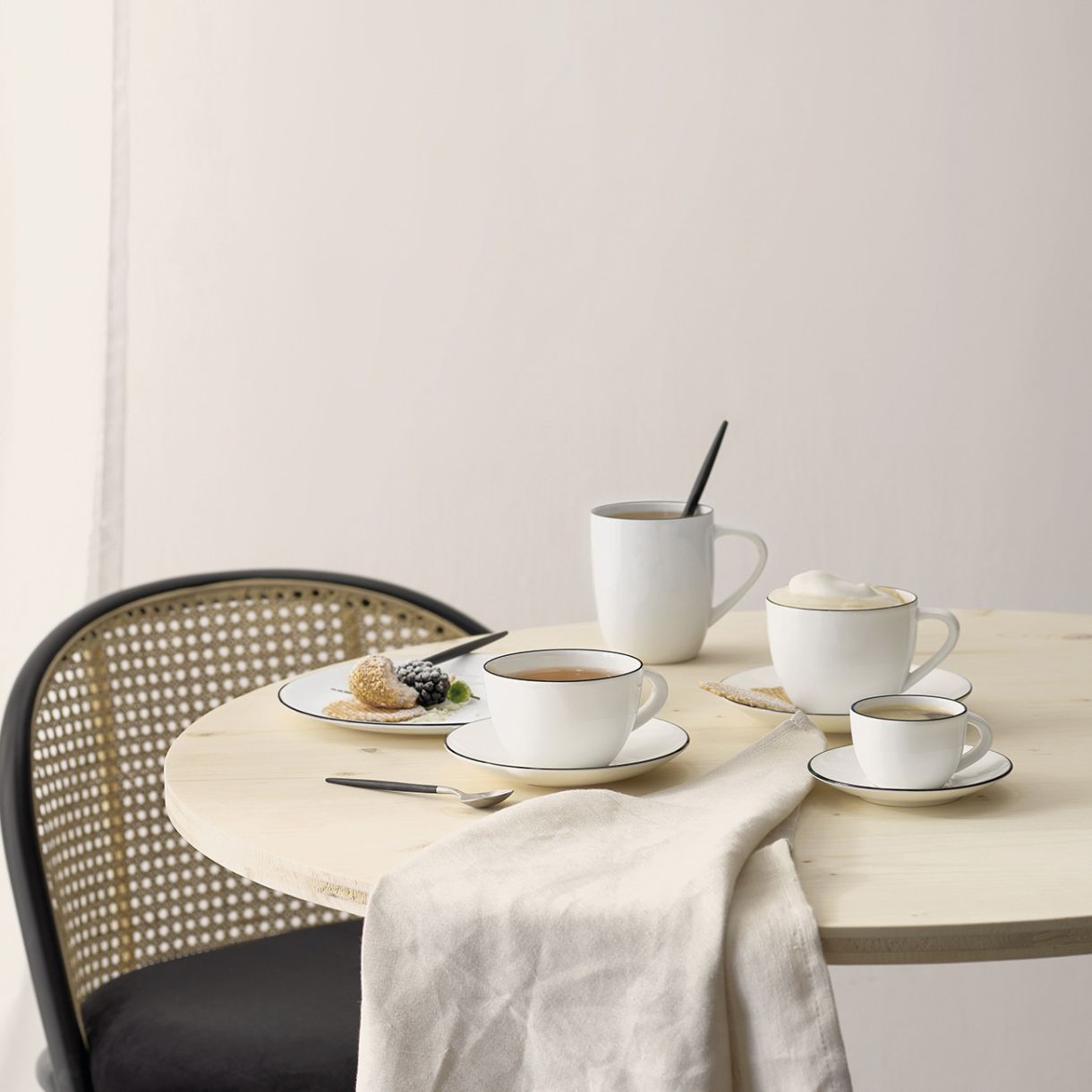 Чаша за капучино с чинийка от популярната колекция à table с обем 250мл. Висококачественият фин костен порцелан осигурява изключителна твърдост и устойчивост на удар. Топлото бяло на порцелана има лек блясък, а ненатрапчивият дизайн на чашата за капучино пасва перфектно на всяка масичка за кафе. Допълнете сервиза с подходяща кана за кафе, захарница и кана за мляко. А ако обичате да поднасяте сладки вкусотии към кафето си, препоръчваме някоя от поставките за торти!