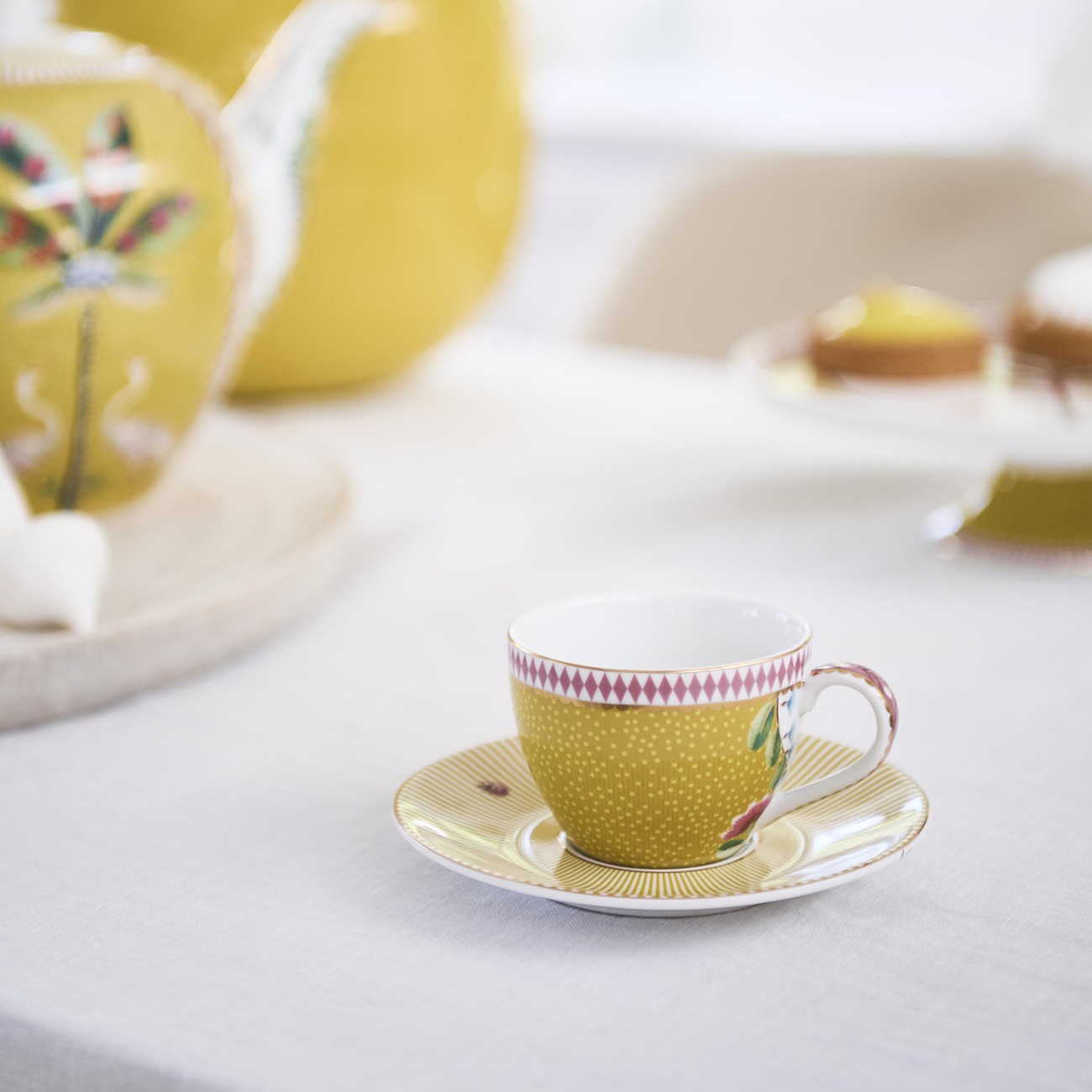 Колекция La Majorelle отдава почит на красивите ботанически градини с голямо разнообразие от цветя и клони от цял свят. Оживена цветна градина, игриво съчетана с палми и величествени чапли. Точките и ивиците на фона придават на този дизайн изненадваща комбинация и модерен привкус.