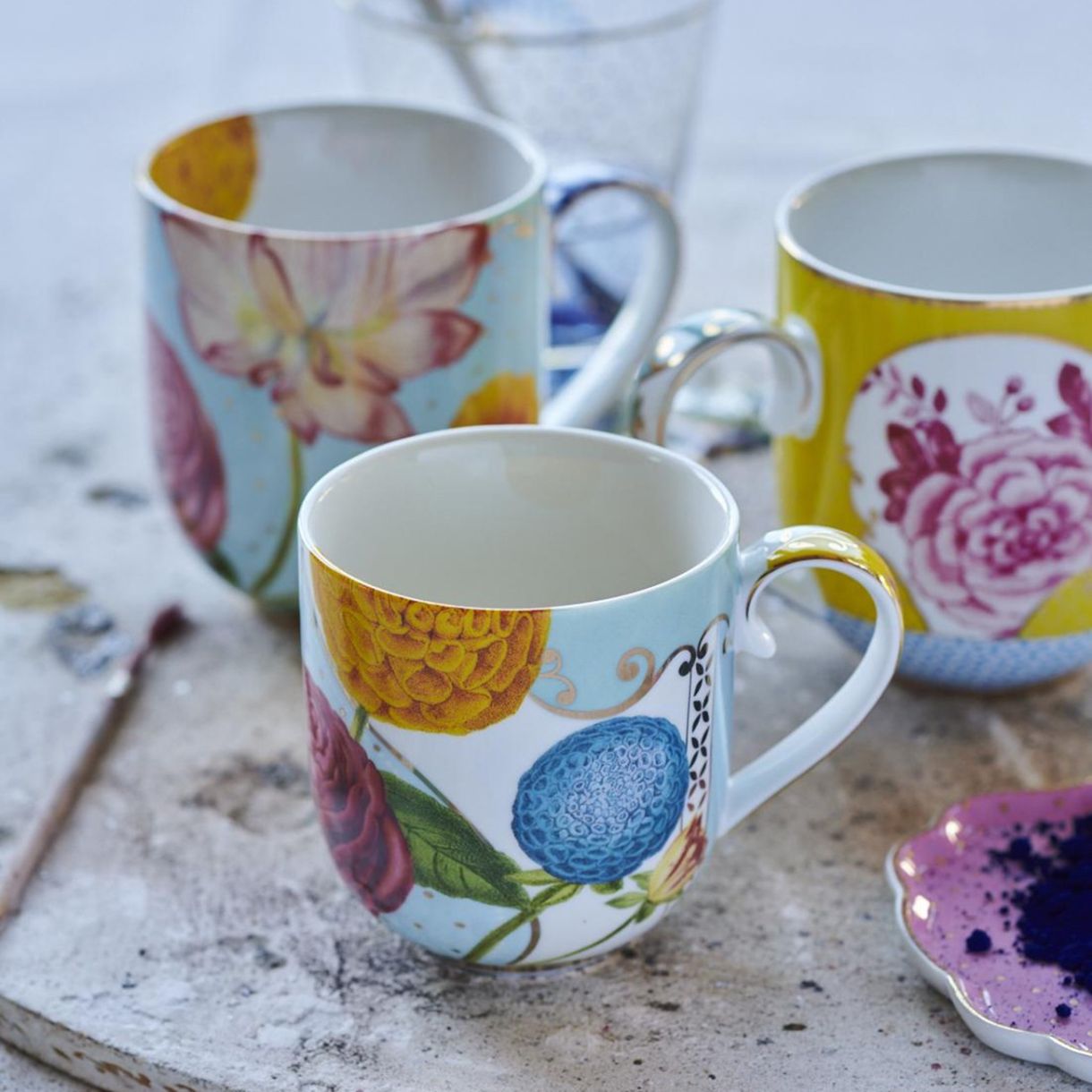 Чашата е част от колекция Royal, която се характеризира с исторически емблеми, винтидж цветя, ръчно рисувани цветове и изискани златни детайли.