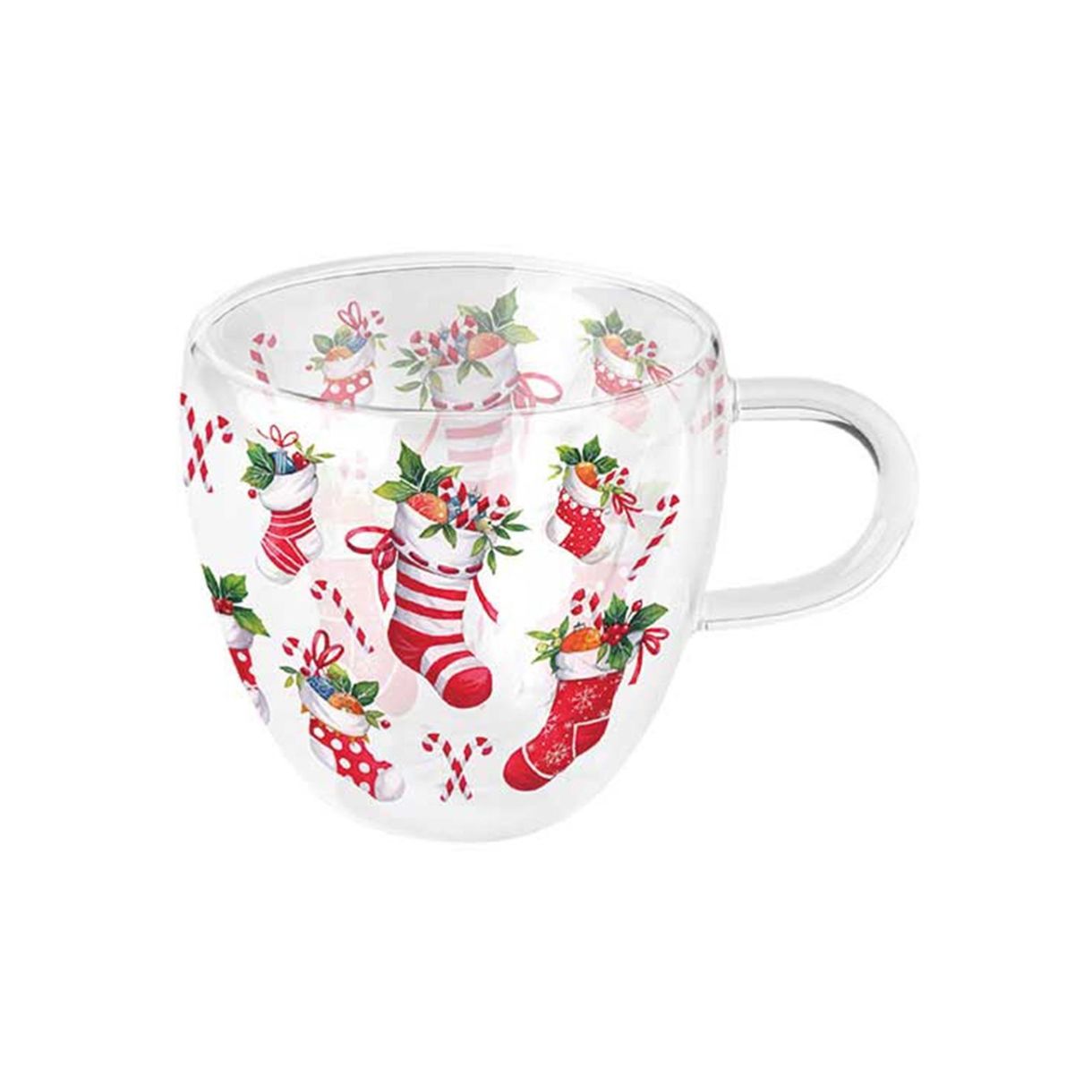 Двустенна стъклена чаша X-MAS STOCKINGS WHITE