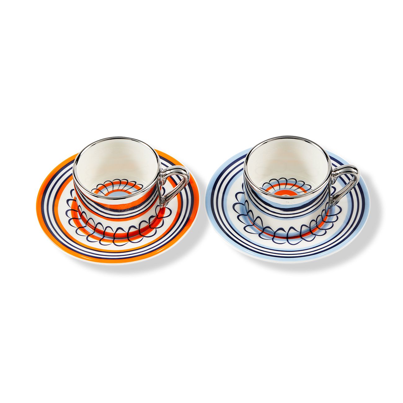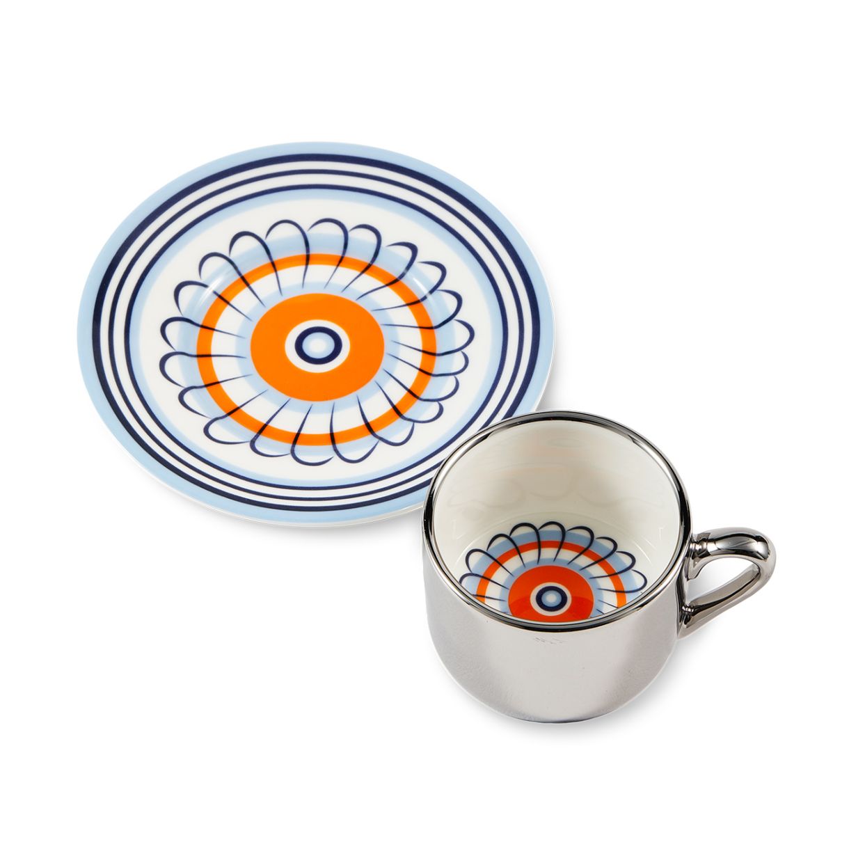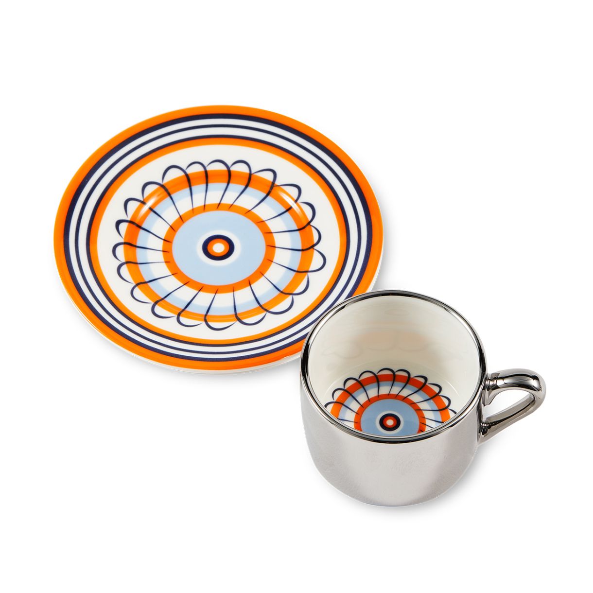 Силно вдъхновен от флоралните чинии от 17-ти век, този еспресо дует се предлага в две смели цветови комбинации: оранжево с тъмносиньо и жълто с тъмнозелено. Светлоотразителният ефект е просто очарователен – шарката оживява, докато я използвате. Всяка глътка предлага поглед към друго време.
