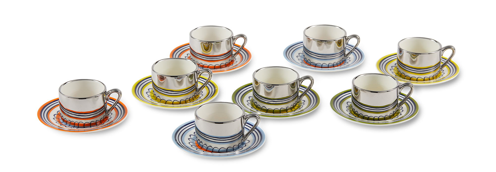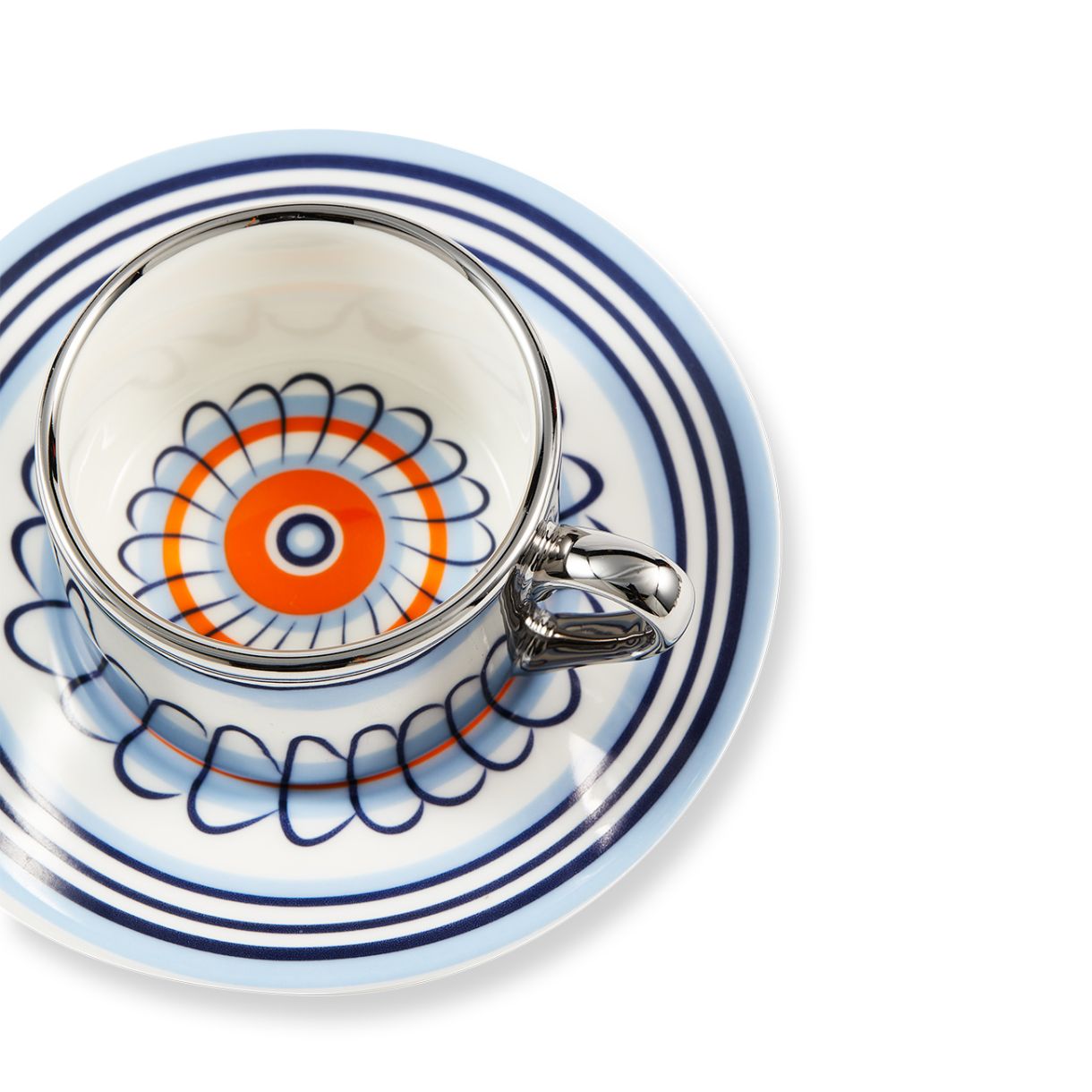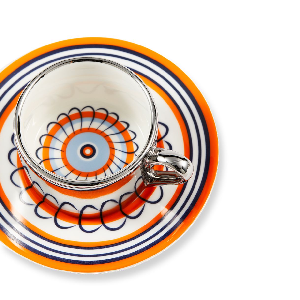 Силно вдъхновен от флоралните чинии от 17-ти век, този еспресо дует се предлага в две смели цветови комбинации: оранжево с тъмносиньо и жълто с тъмнозелено. Светлоотразителният ефект е просто очарователен – шарката оживява, докато я използвате. Всяка глътка предлага поглед към друго време.
