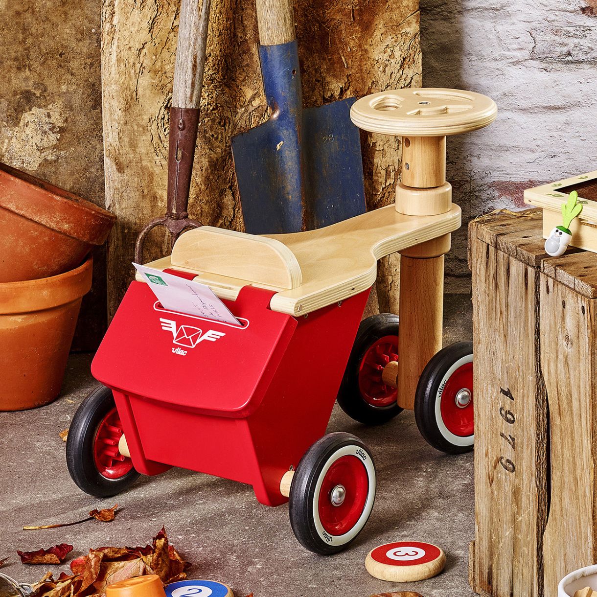 Всеки пощальон тихо ще завижда на Вашата дървена триколка от Vilac ! Атрактивна и изискана, снабден отзад с отделение с капак на панти и отвор, където можете да пуснете весели и важни писма.