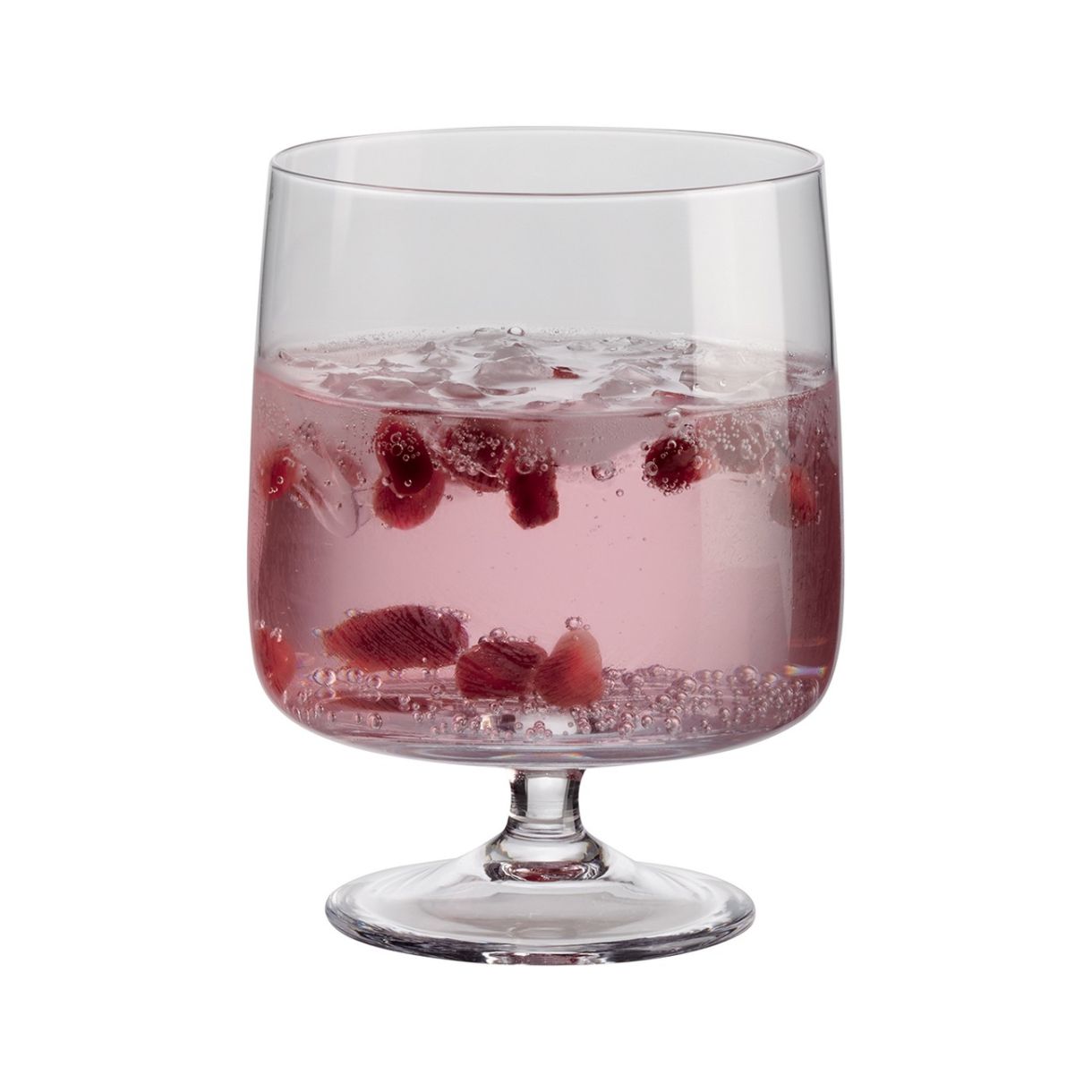 Независимо дали става въпрос за аперитив, вино или безалкохолни освежителни напитки като вода или шприцове: чашата с ниско столче с капацитет от 0,200мл не само пасва чудесно в ръката, но също така може да се подреди до четири една в друга, за да спести място. Комбинирайте с гарафите и чашите от същата колекция.